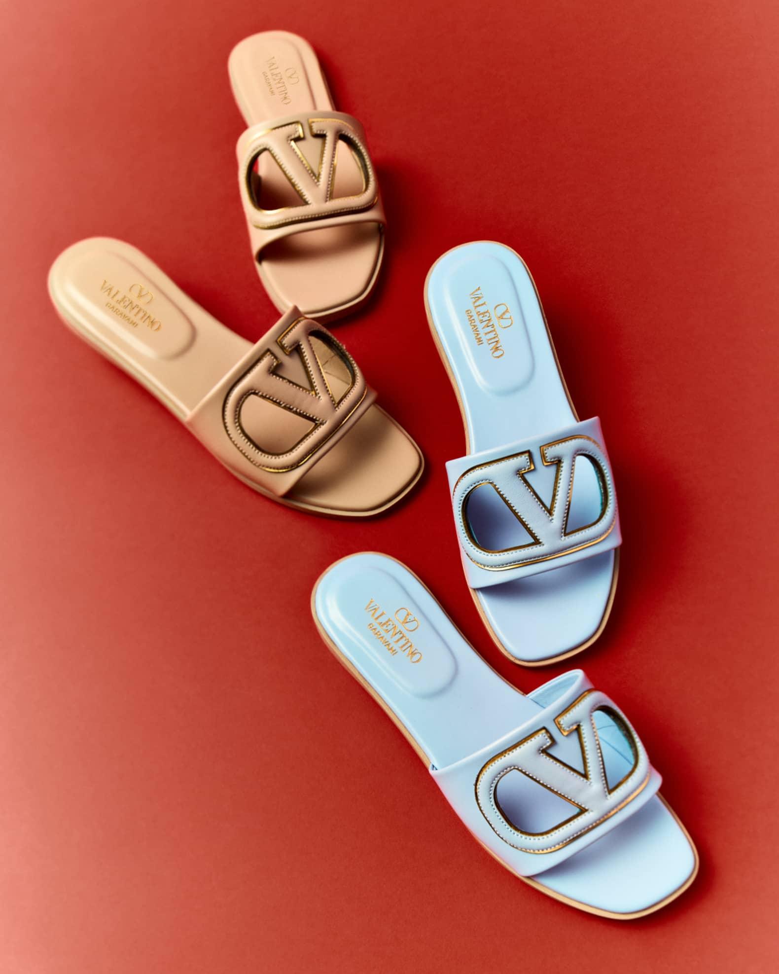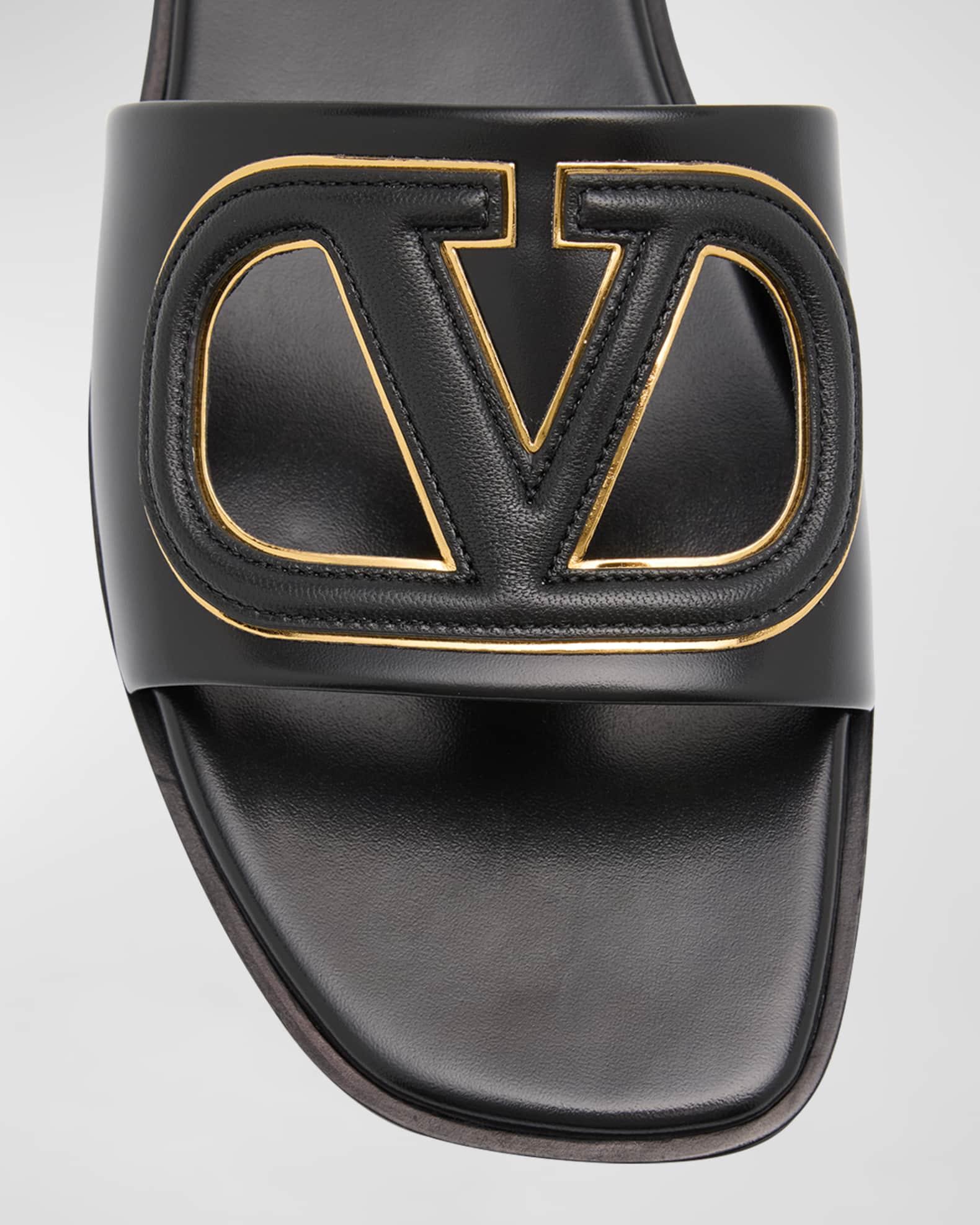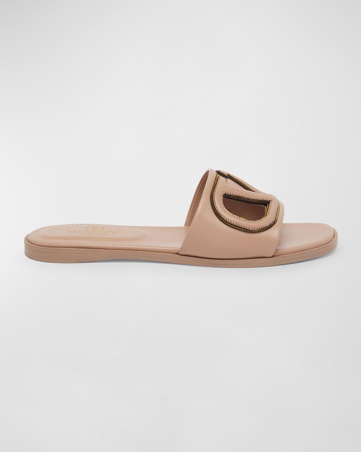 VLogo Leather Cutout Flat Slide Sandals
