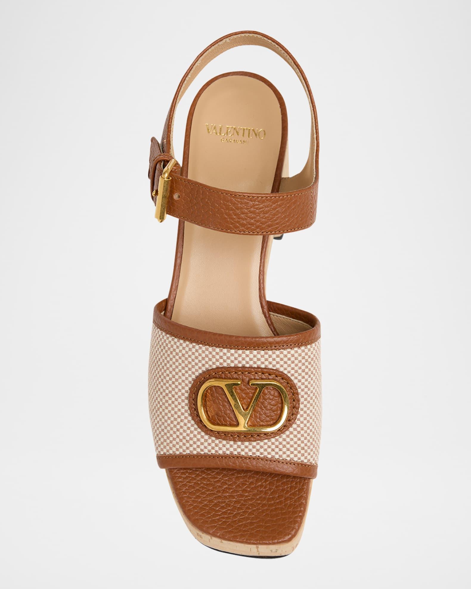 VLogo Signature Canvas and Leather Platform Sandals