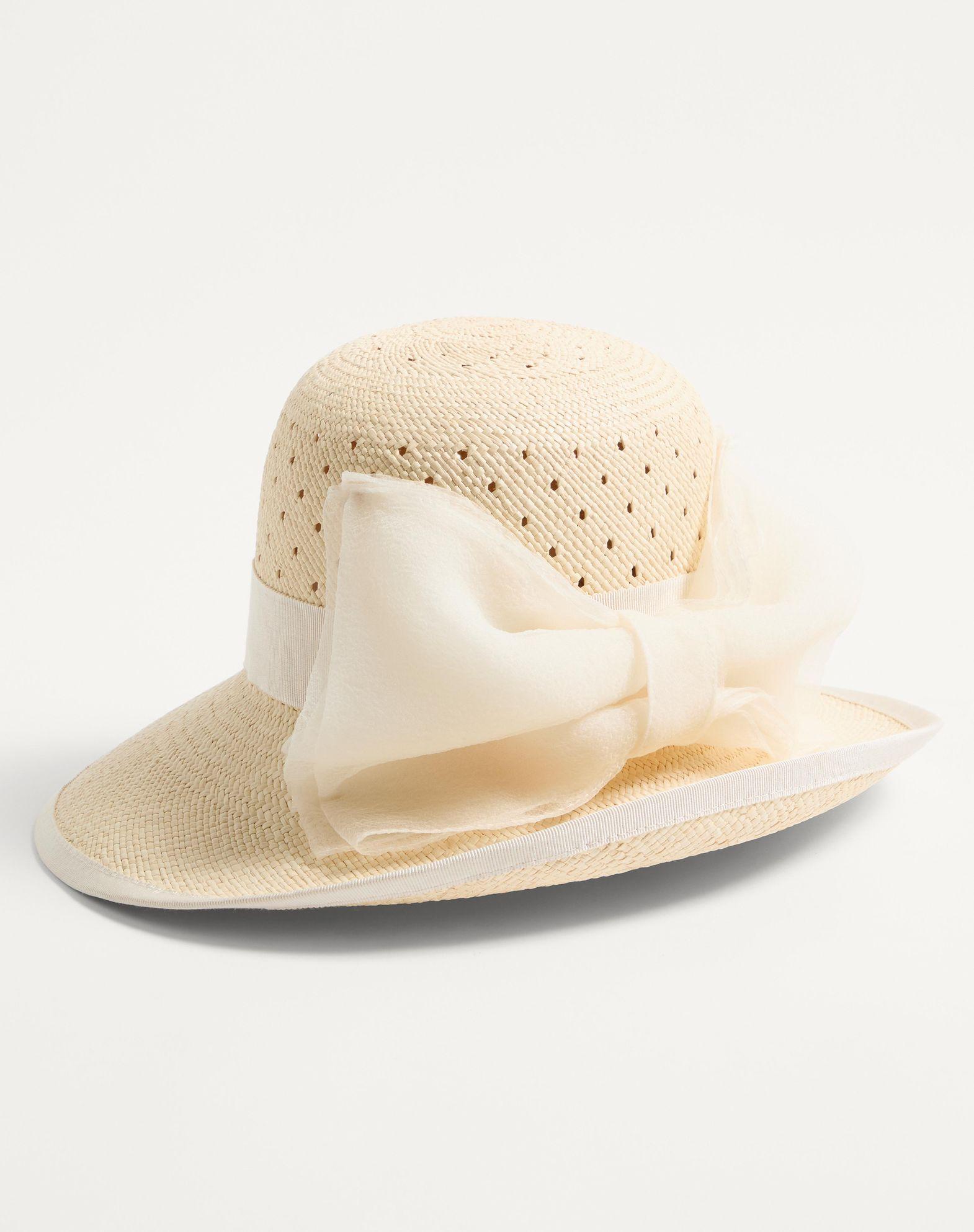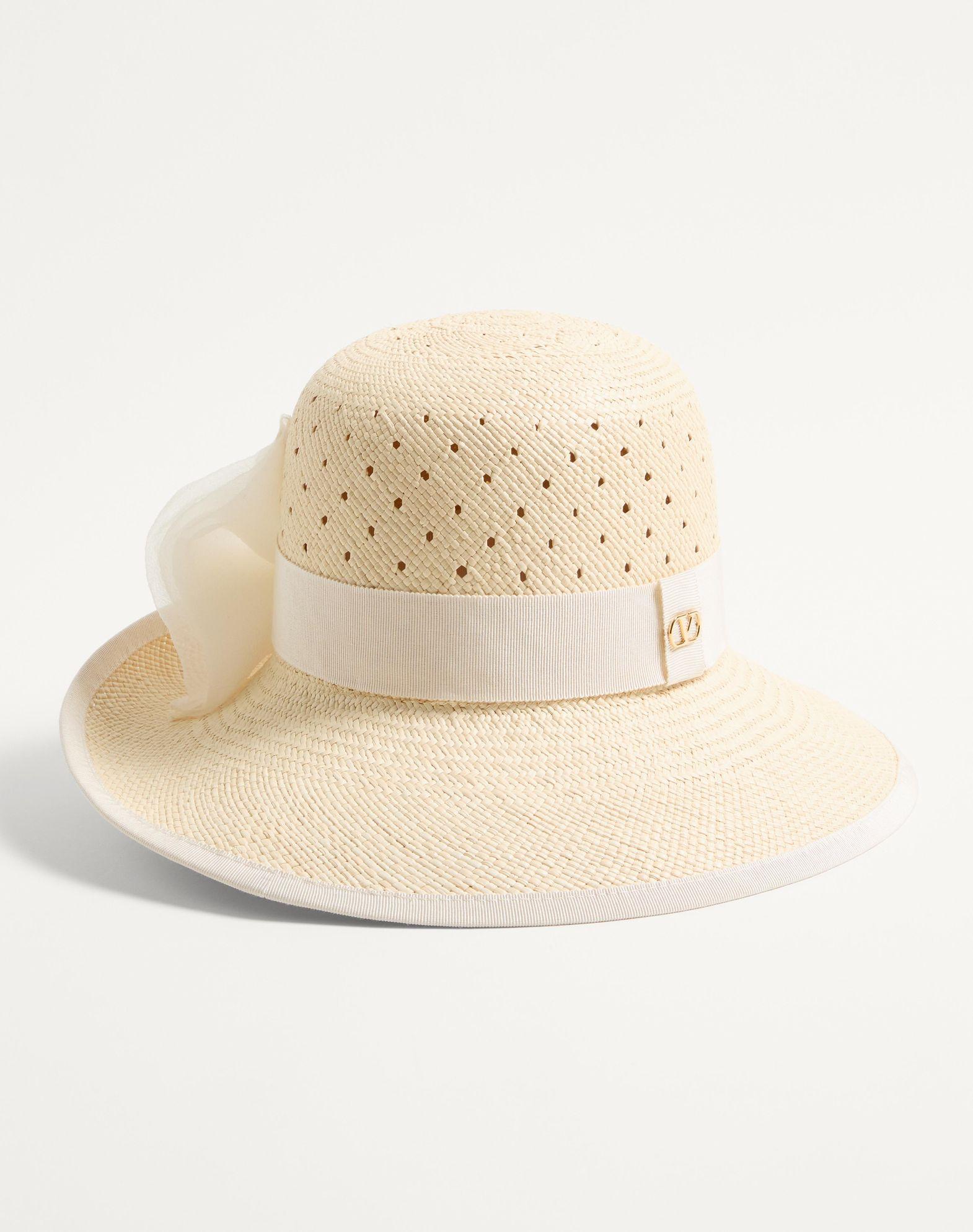 Visit the Valentino Online Boutique and discover Vlogo Signature Hat In Perforated Panama With Organza Bow for Woman. Complimentary shipping and returns.