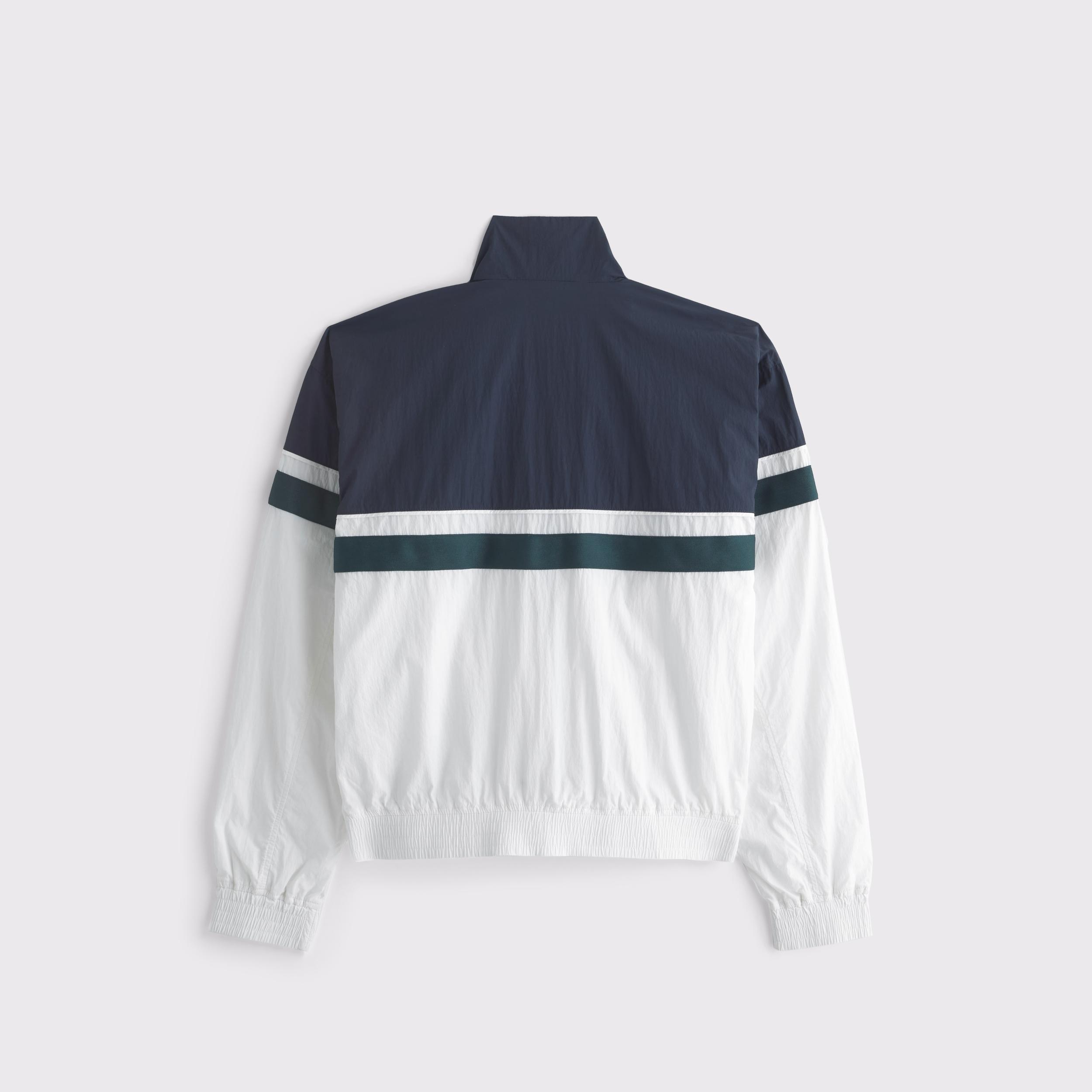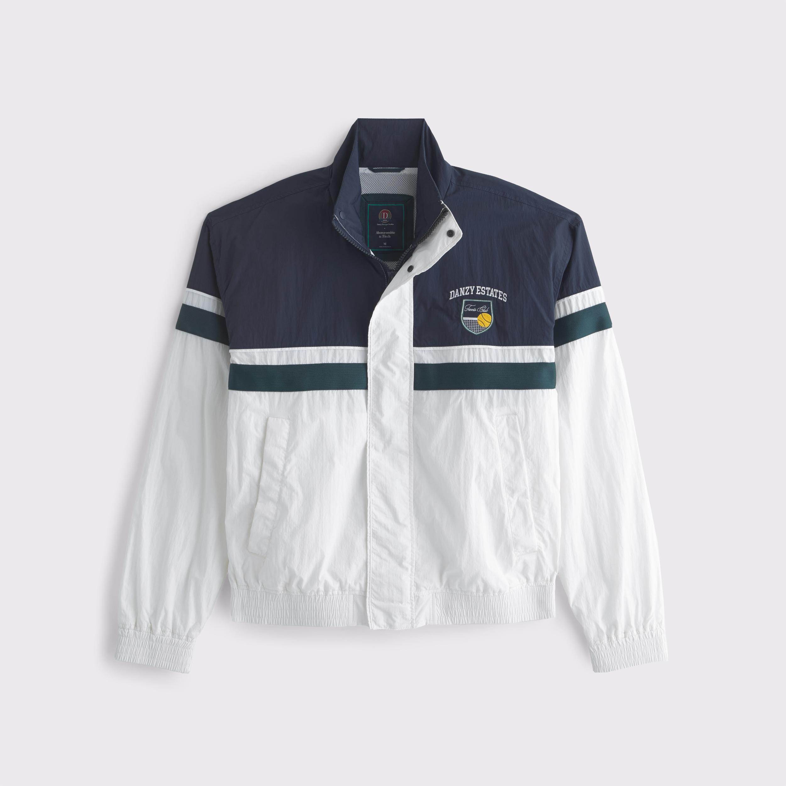 Our new cropped track jacket in a synthetic fabric and cropped length, featuring a relaxed-fit silhouette, Danzy-inspired graphic detail at left chest, color blocking detail, zip- and snap-up front, mock neckline, side pockets and banded hem and cuffs. Vol. 28 is our recurring collection designed to amplify Black voices and culture beyond Black History Month. The newest drop was co-designed with Marshall Danzy featuring smart staples and retro sportswear inspired by the 90s.