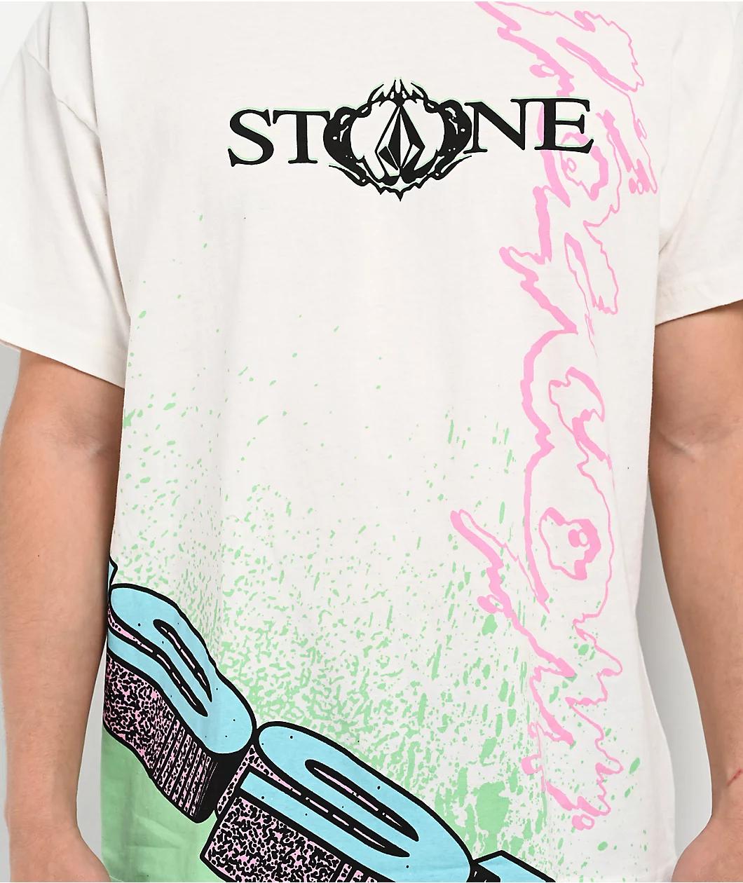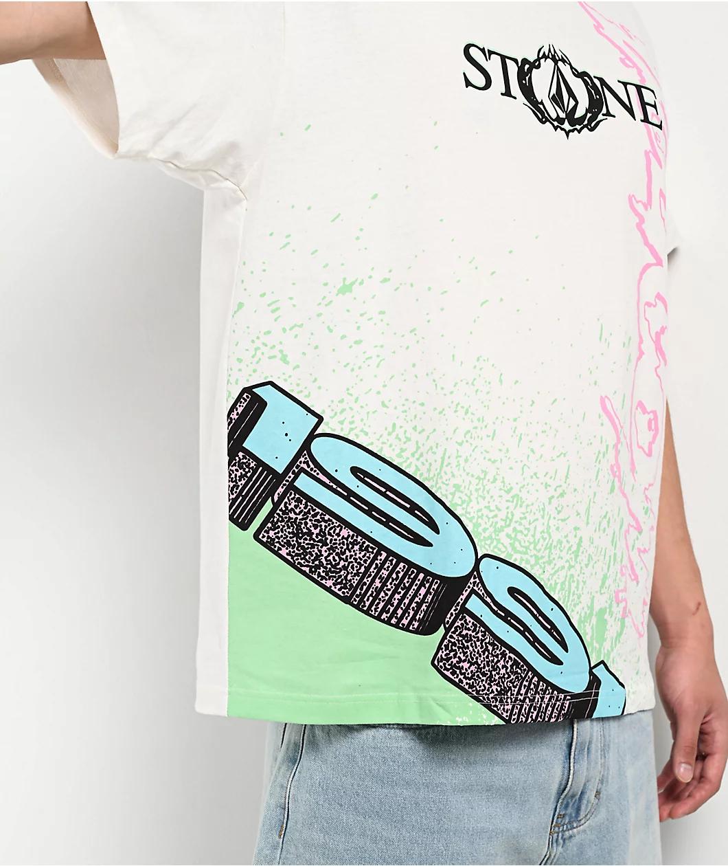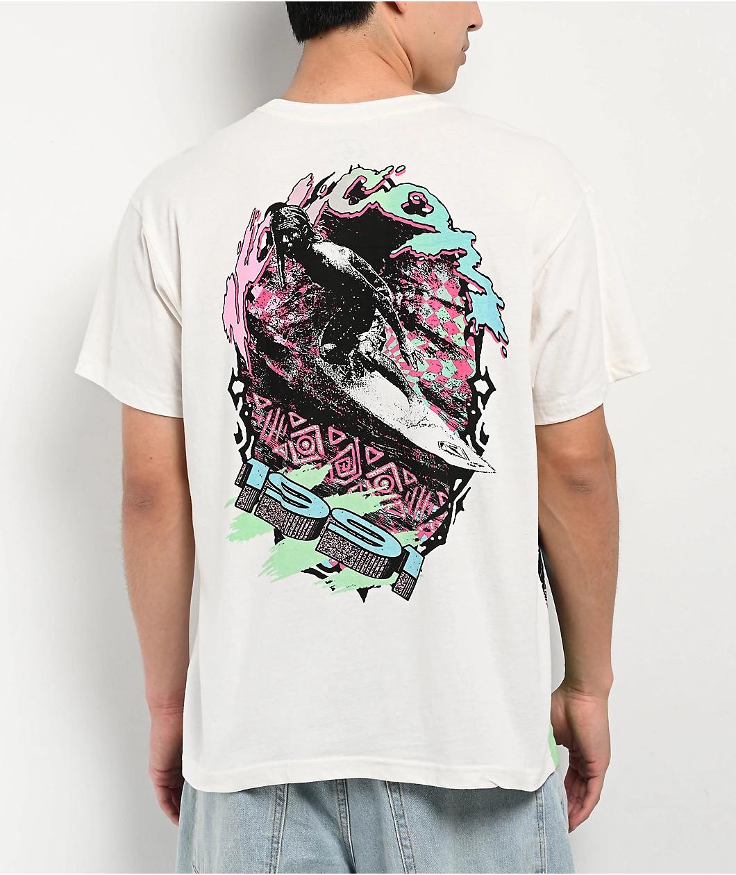 Landing in a white cotton construction from Volcom, the Heavy Tubes t-shirt features colorful graphics printed on the front and back. Inspired by surfing, the front of the tee employs a 90's-style design with vibrant branding and a splatter effect at