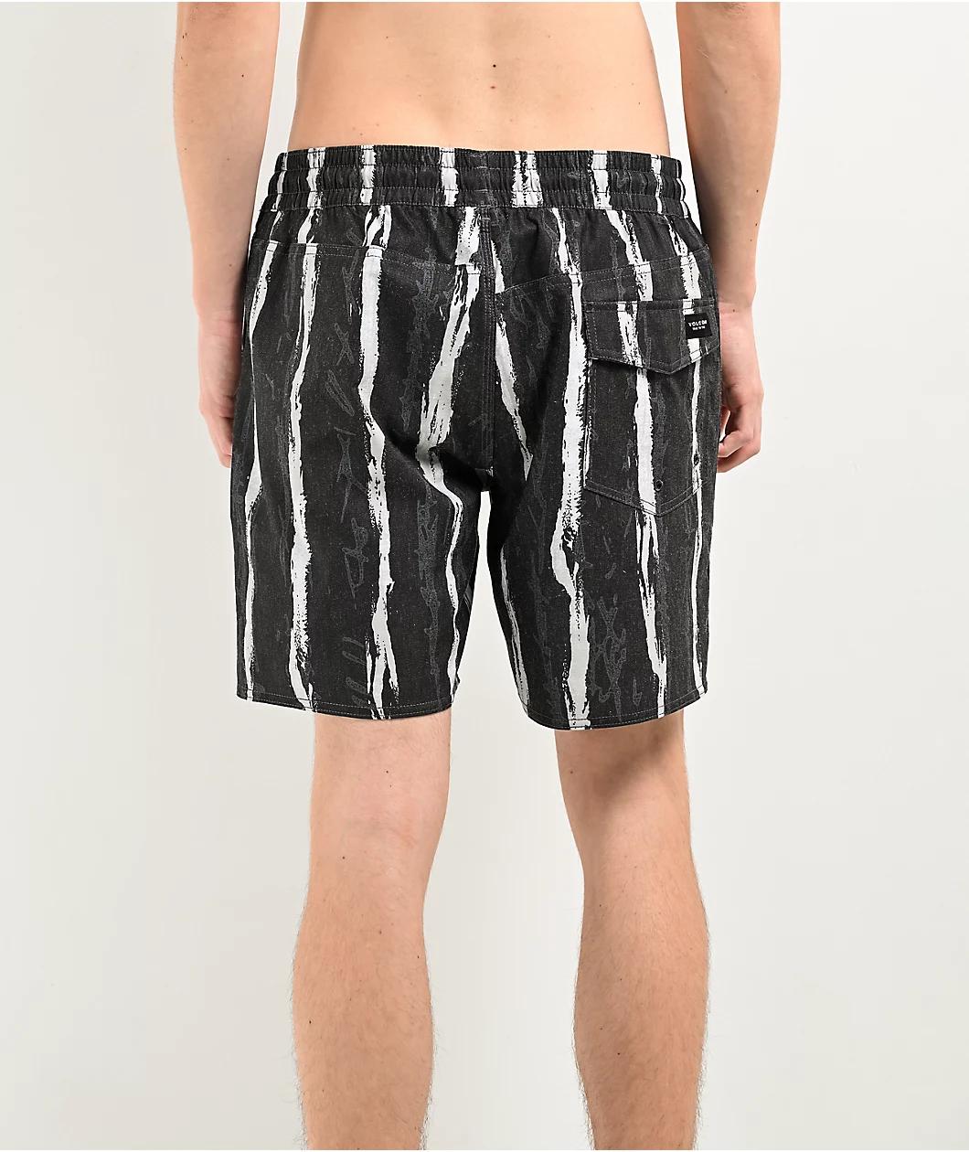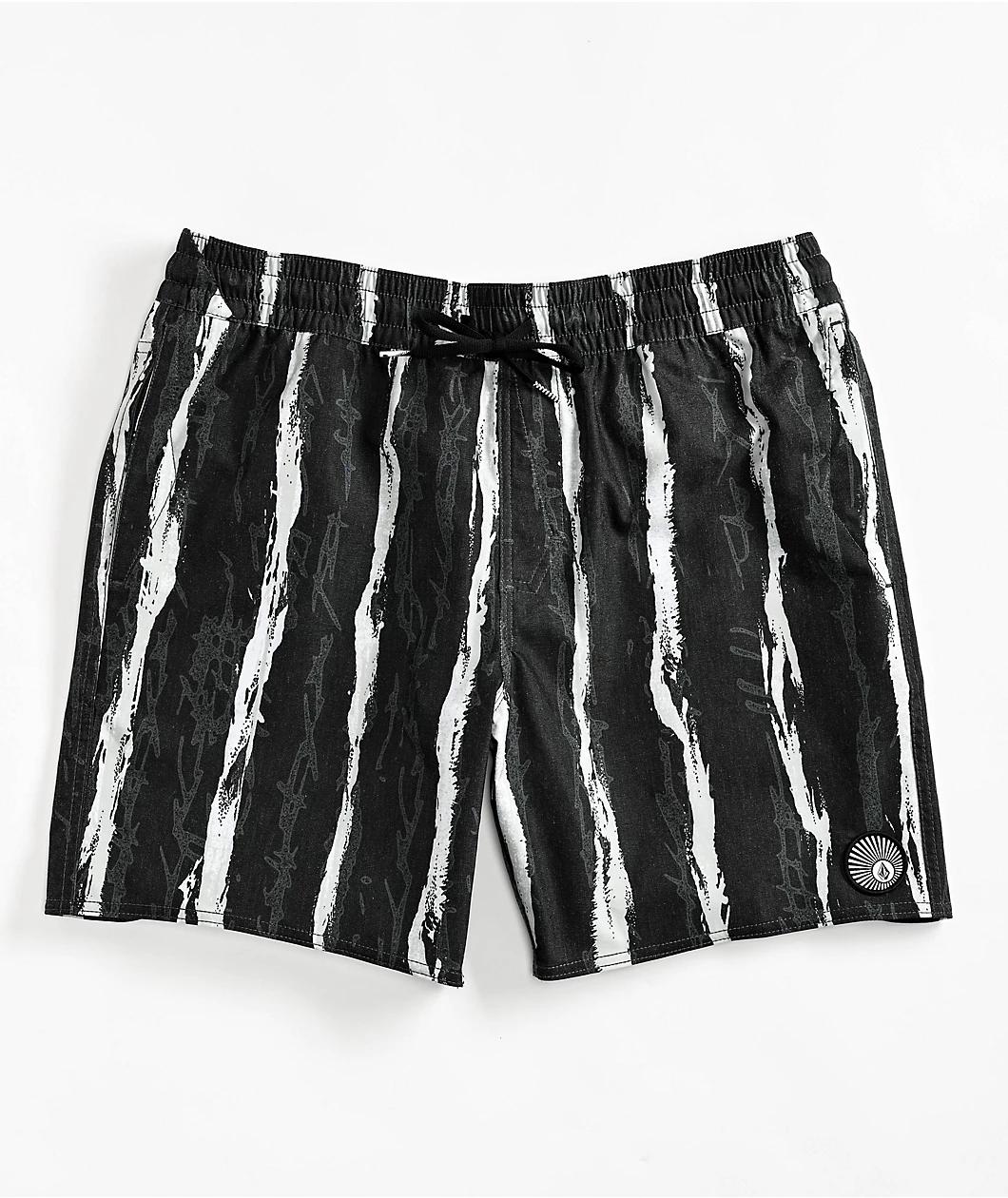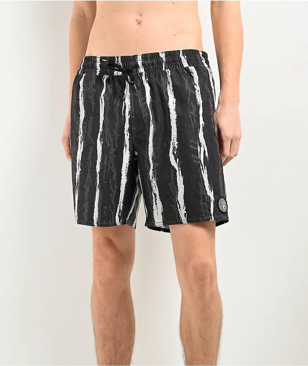 The Hockey Dad board shorts arrive from Volcom in a black colorway with a sublimated sketchbook pinstripe pattern throughout. Built from REPREVE® recycled plastic bottles, the water-resistant swim shorts offer an adjustable drawstring in the elast