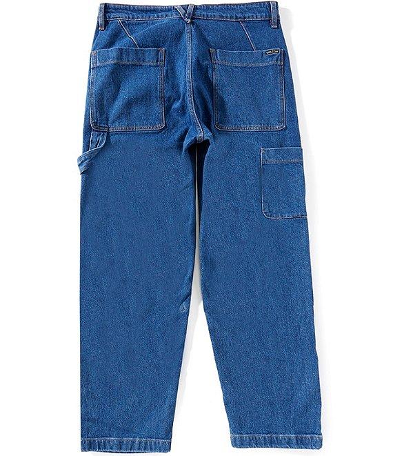 From Volcom, these jeans feature: Mid rise Zip/button front closure Belt loops 5-pocket jeans 2 front pockets (1 with coin pocket) 2 back pockets Full length Loose tapered fit Tough cotton high ridge twill denim with a garment wash Machine wash/tumble dry Imported.