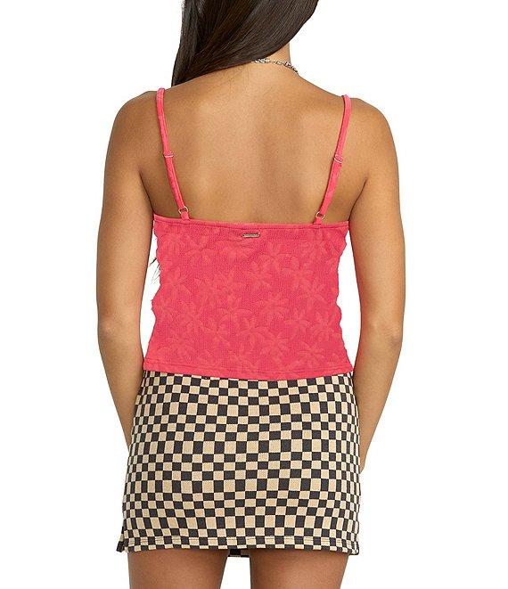 From Volcom, this tank top features: Floral debossed tonal jacquard design Scoop neckline Sleeveless Adjustable spaghetti straps Metal badge on the back Pullover styling Polyester/nylon (polyamide)/elastane jacquard knit Hand wash/line dry Imported.