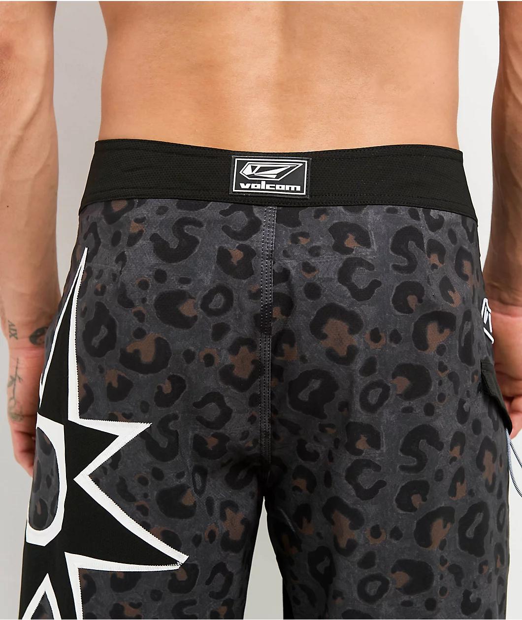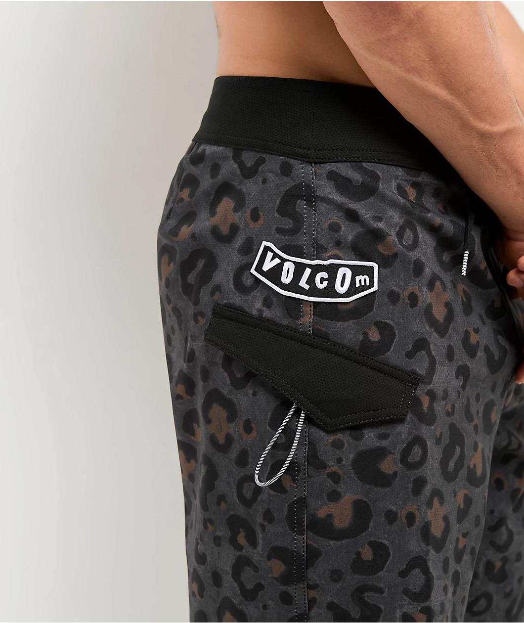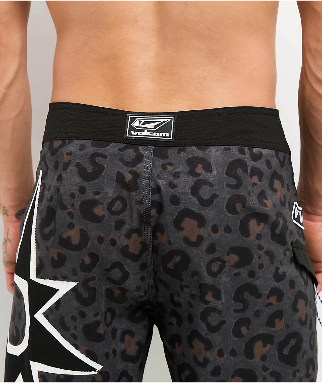 Ready to get wet, the St4r G4zer board shorts from Volcom land in a black polyester build with a printed pattern throughout and embroidered graphics on both legs. Not lined, the swim trunks lend a roomy, relaxed look and utilize an adjustable Cinch F