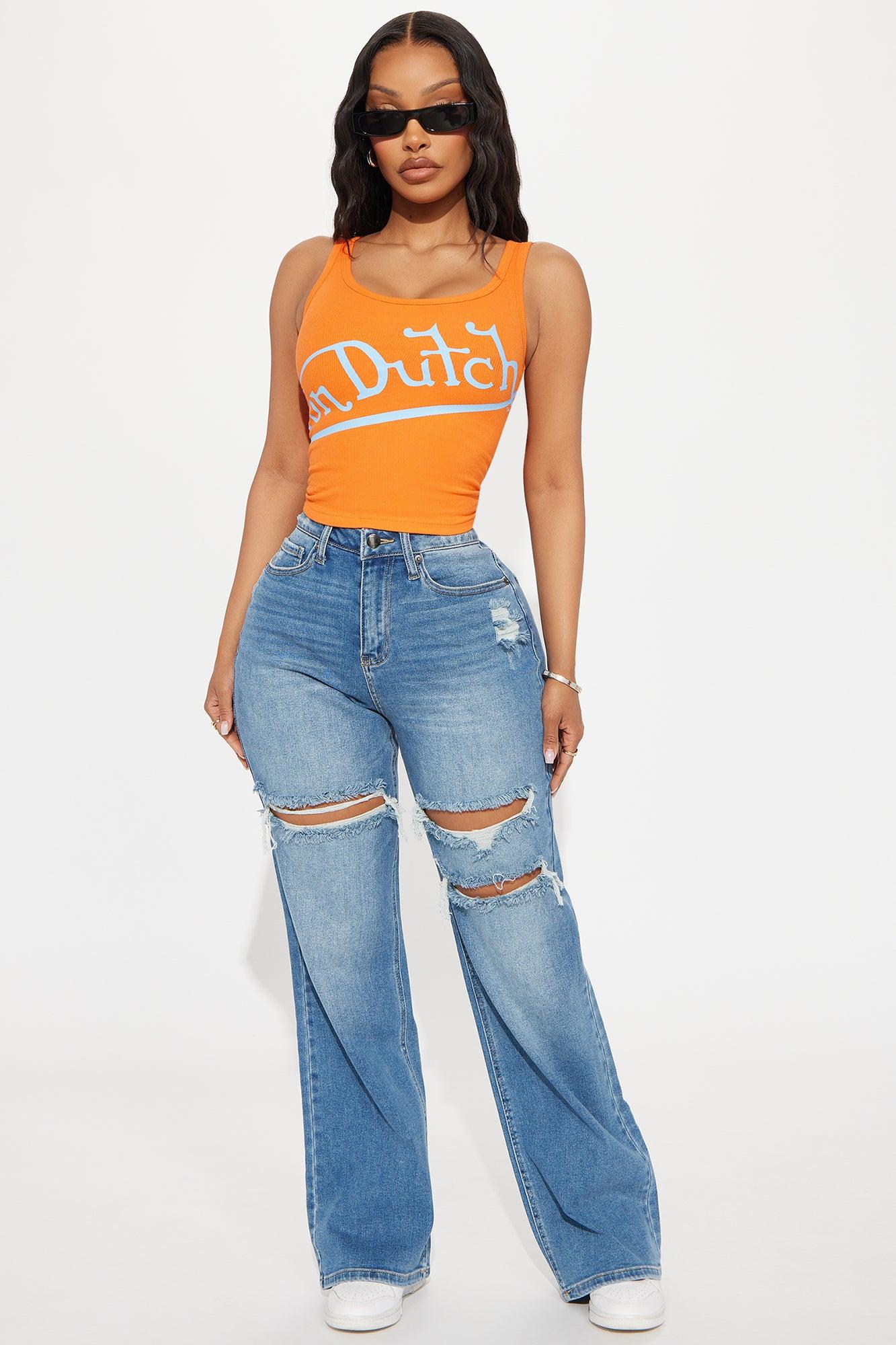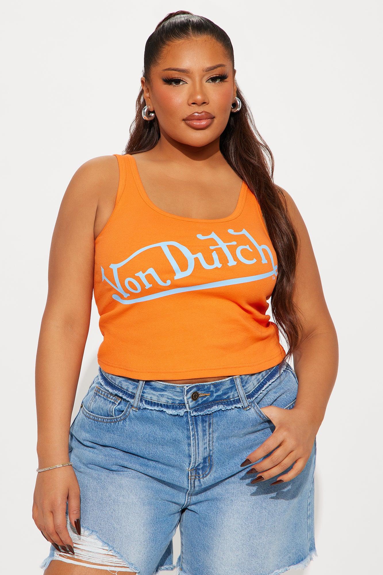 Available In Orange/combo And Light Blue. Tank Top Scoop Neck Sleeveless Von Dutch Graphic Logo Front Screen Stretch Disclaimer: Due To The Printing Process A Difference In Saturation May Occur, each Garment Is Unique. 95% Cotton 5% Spandex Imported