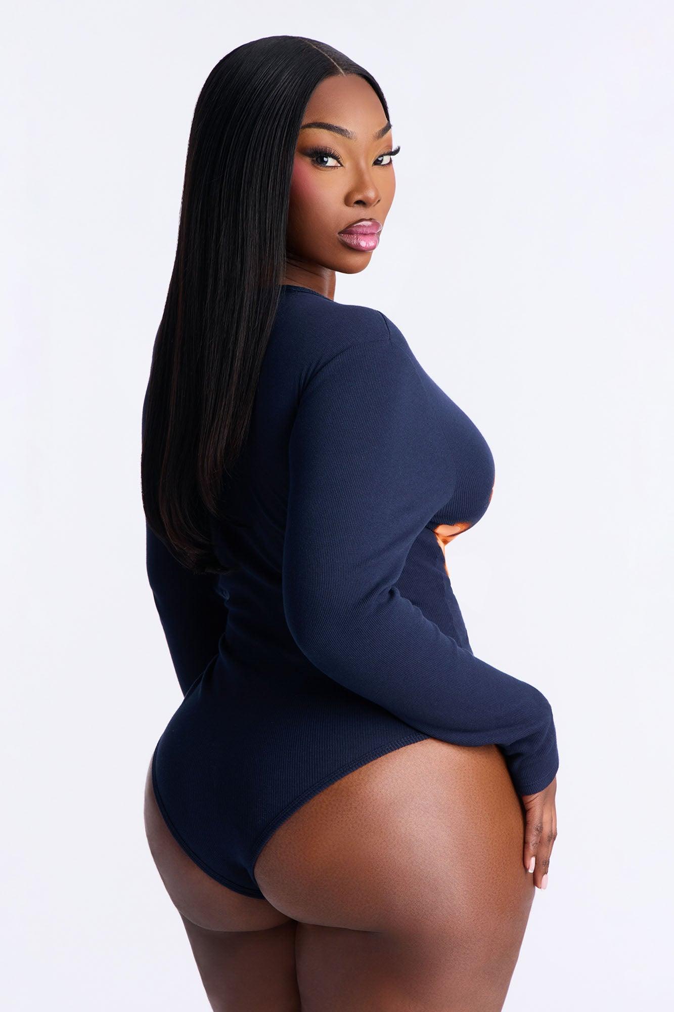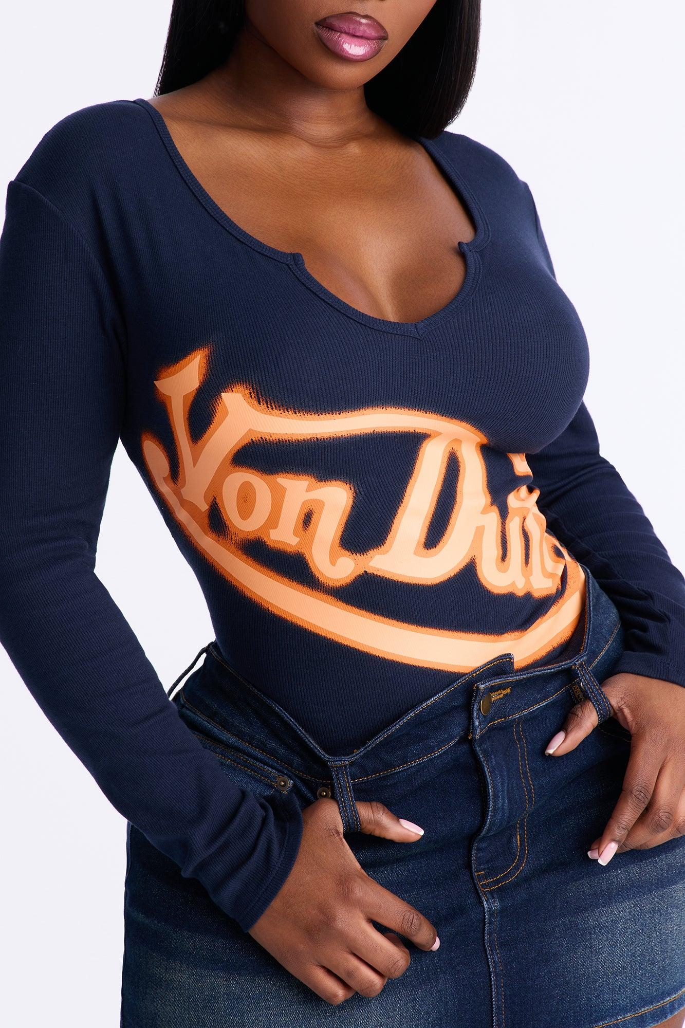 Von Dutch Notch Neck Ribbed Bodysuit - Navy Female