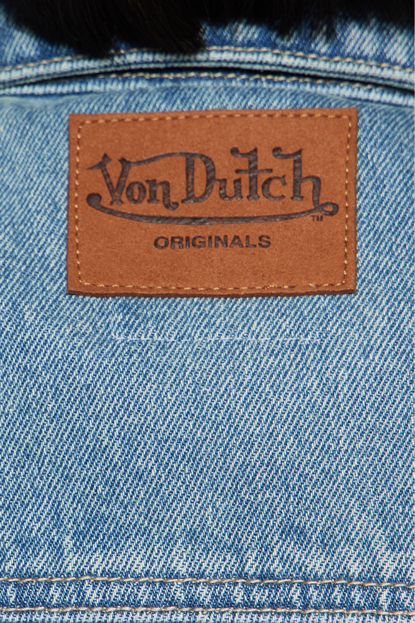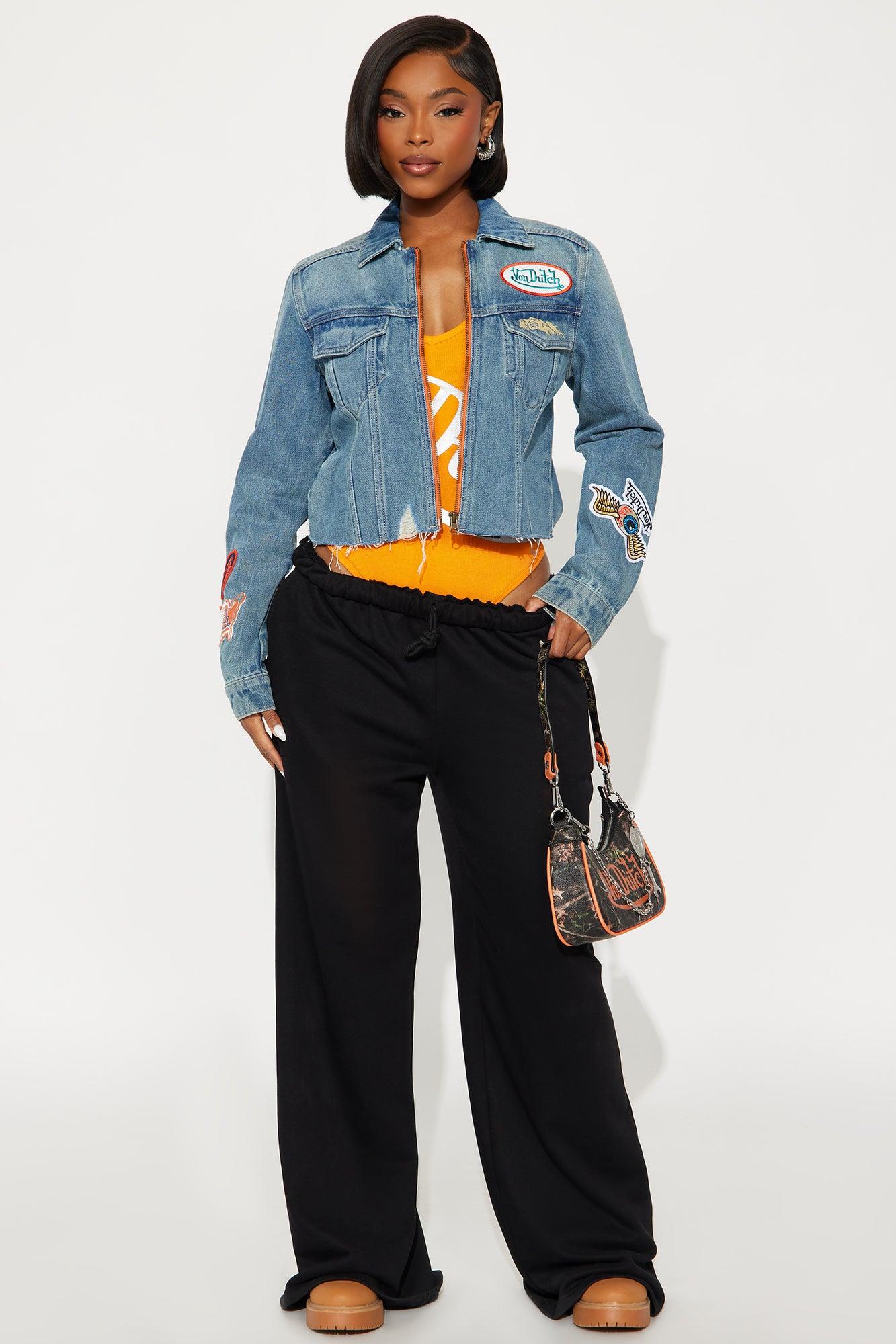 Available In Medium Wash. Denim Jacket Collar Zip Closure Chest Pockets Patches Non-Stretch Disclaimer: Due To The Specialized Wash Process, Each Garment Is Unique. 100% Cotton Imported California Proposition 65WARNING: Cancer and Reproductive Harm - www.P65Warnings.ca.gov.