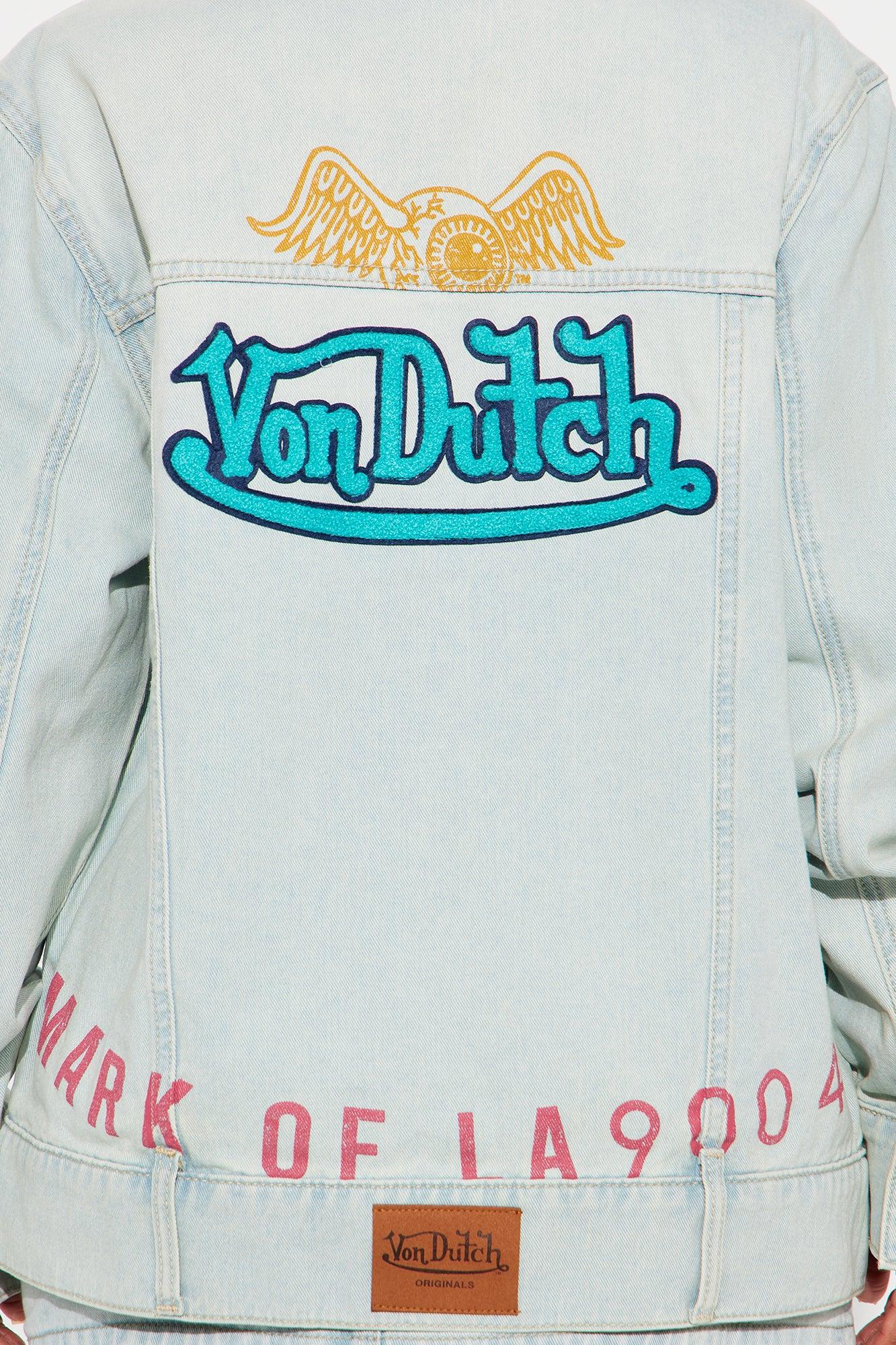 Available In Light Wash. Pair With Von Dutch Patchwork Denim Mini Skirt Denim Trucker Jacket Front Pockets Screen Print Patches Non Stretch Disclaimer: Due To The Printing Process A Difference In Saturation May Occur. Each Garment Is Unique. 100% Cotton Imported California Proposition 65WARNING: Cancer and Reproductive Harm - www.P65Warnings.ca.gov.