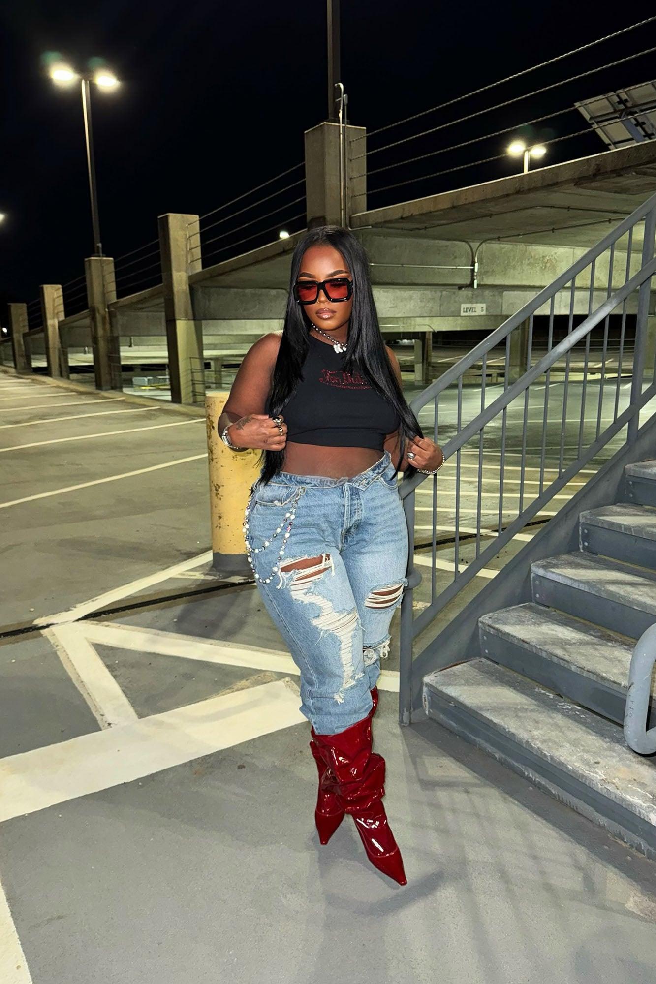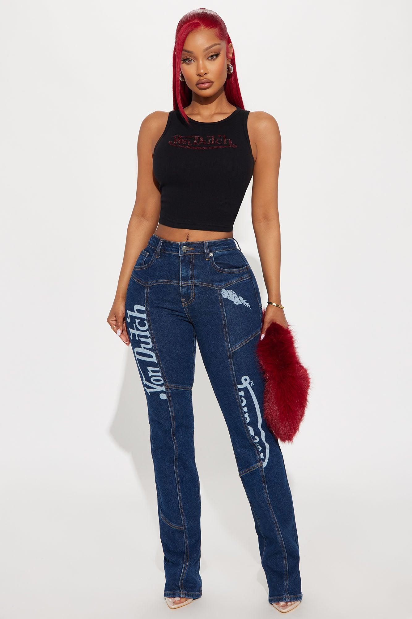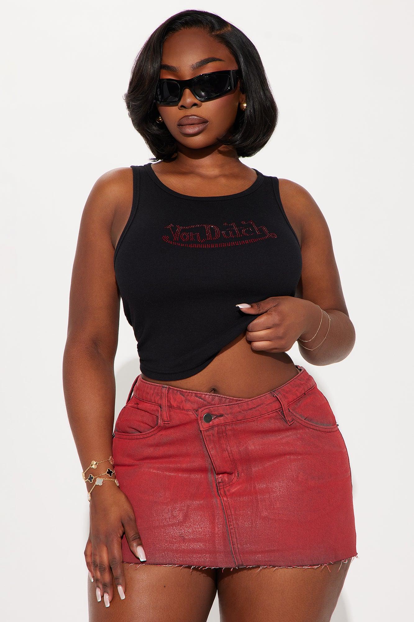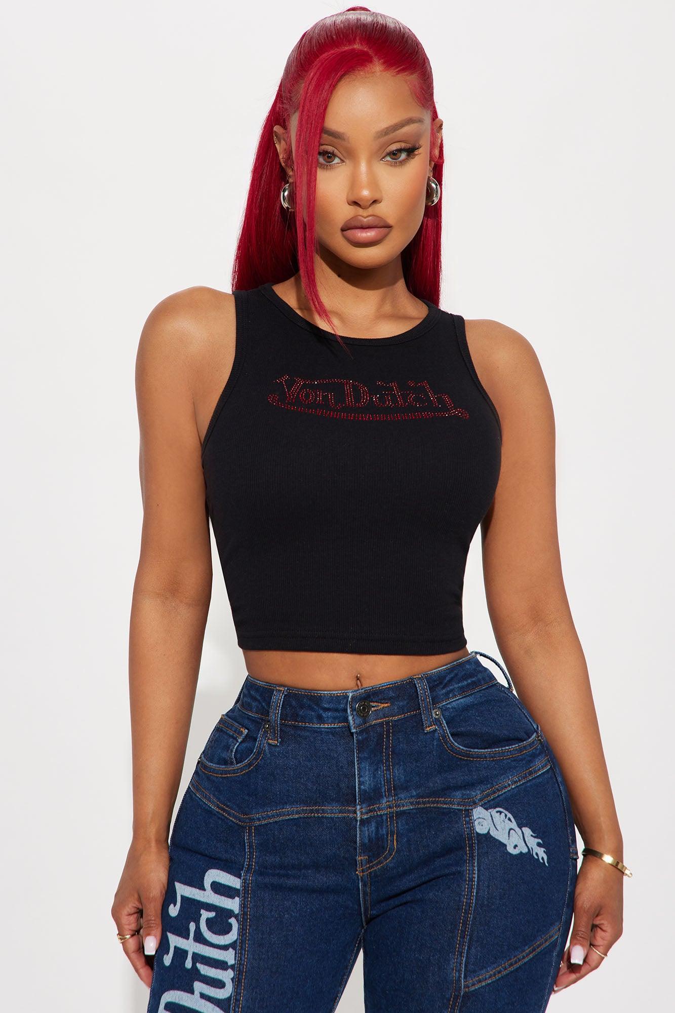 Von Dutch Rhinestone Cropped Tank Top - Black/Red
