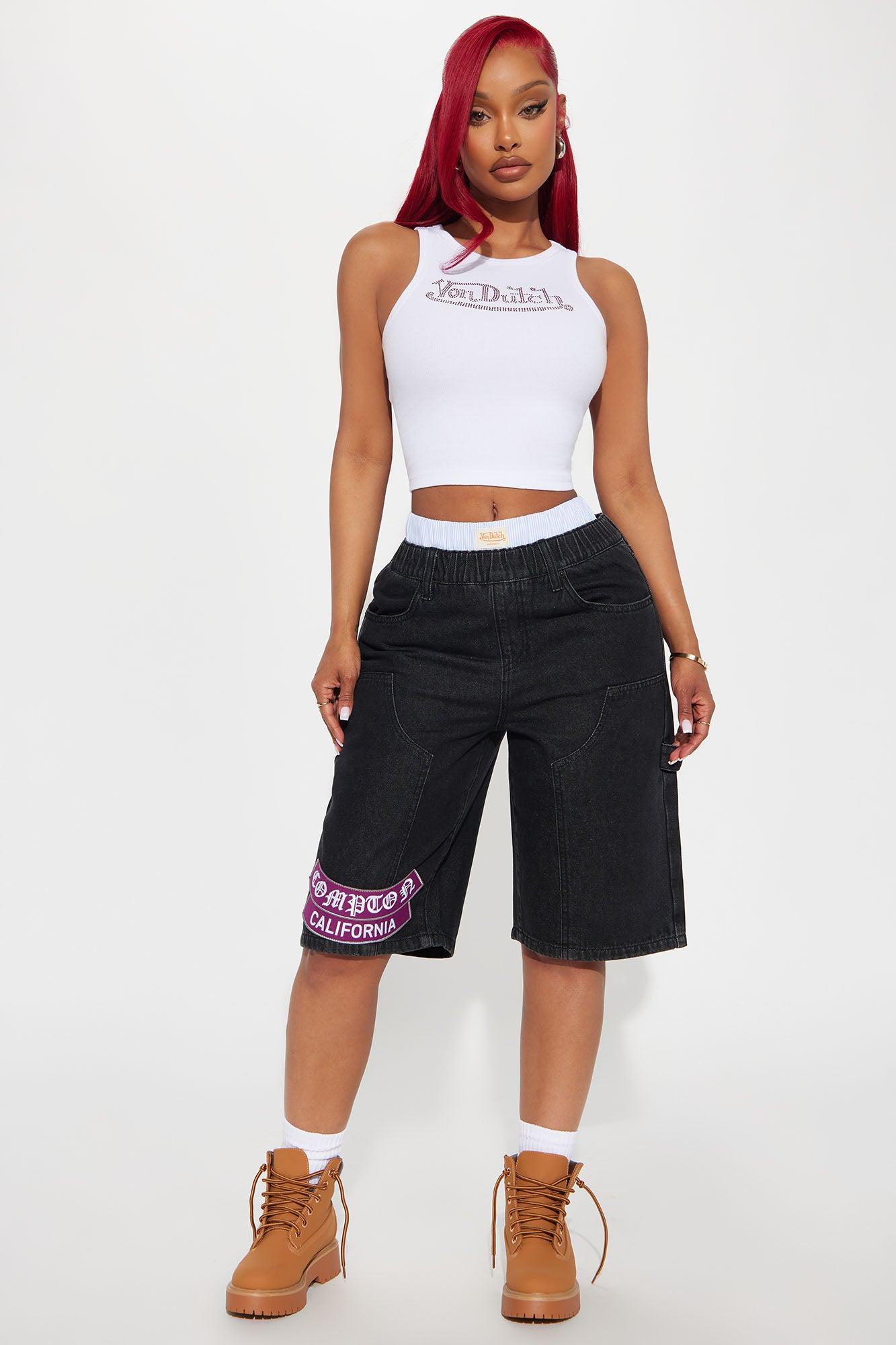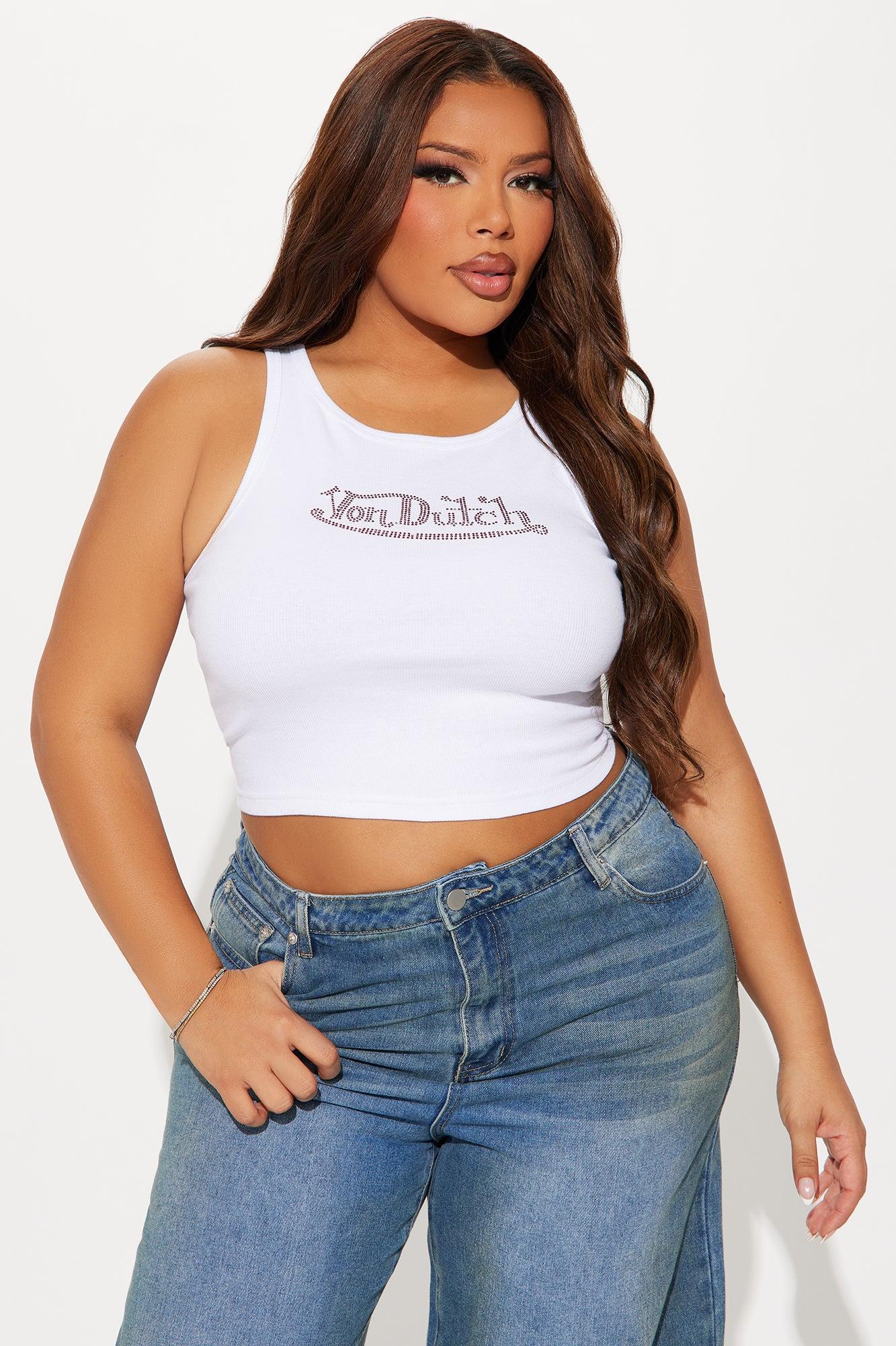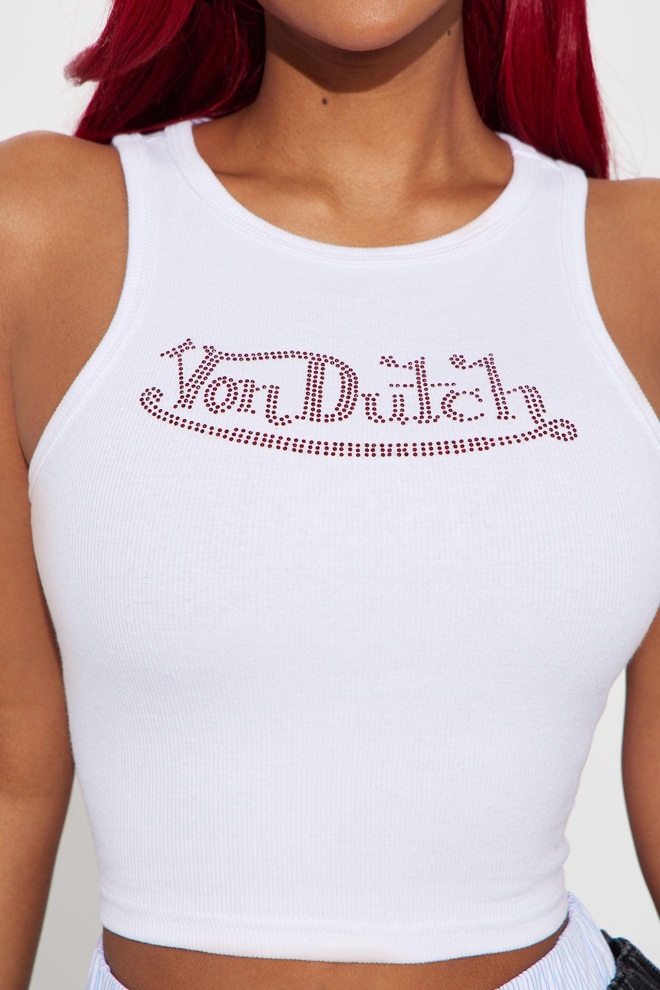 Von Dutch Rhinestone Cropped Tank Top - Red/White