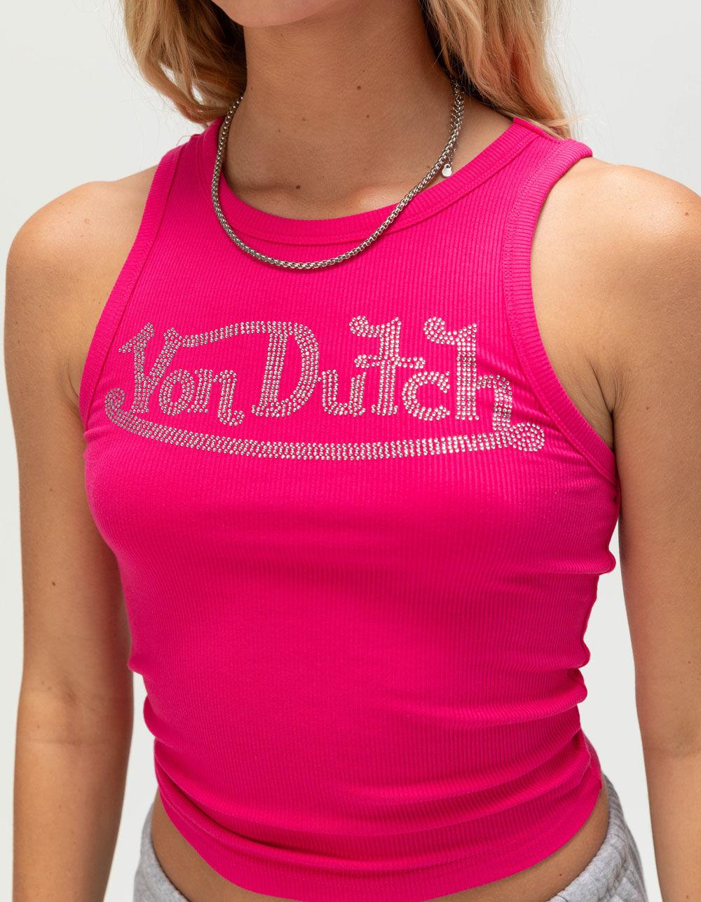VON DUTCH Rhinestone Womens Tank Top - HOT PINK
