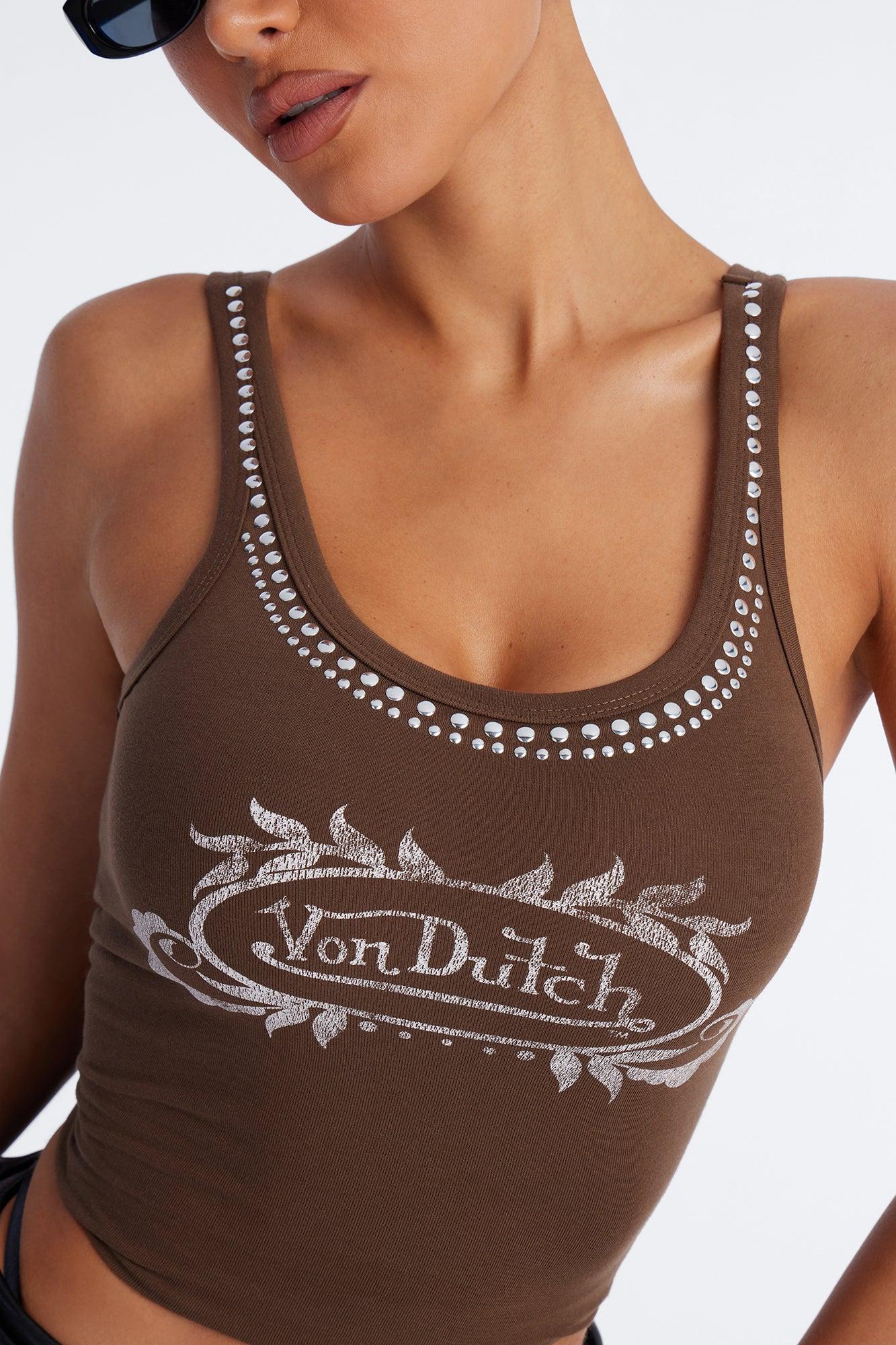 Von Dutch Saddle Studded Tank Top - Brown Female