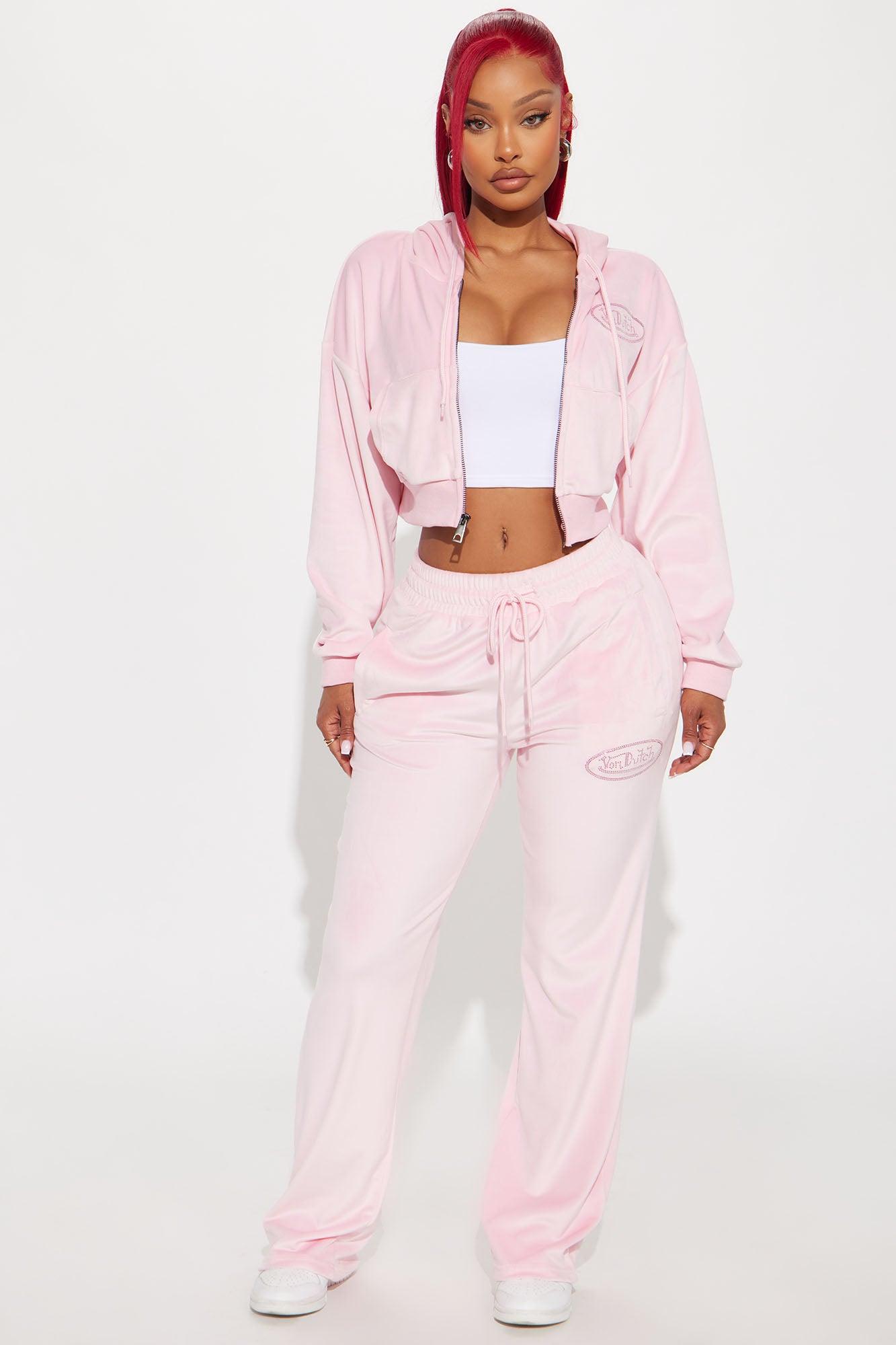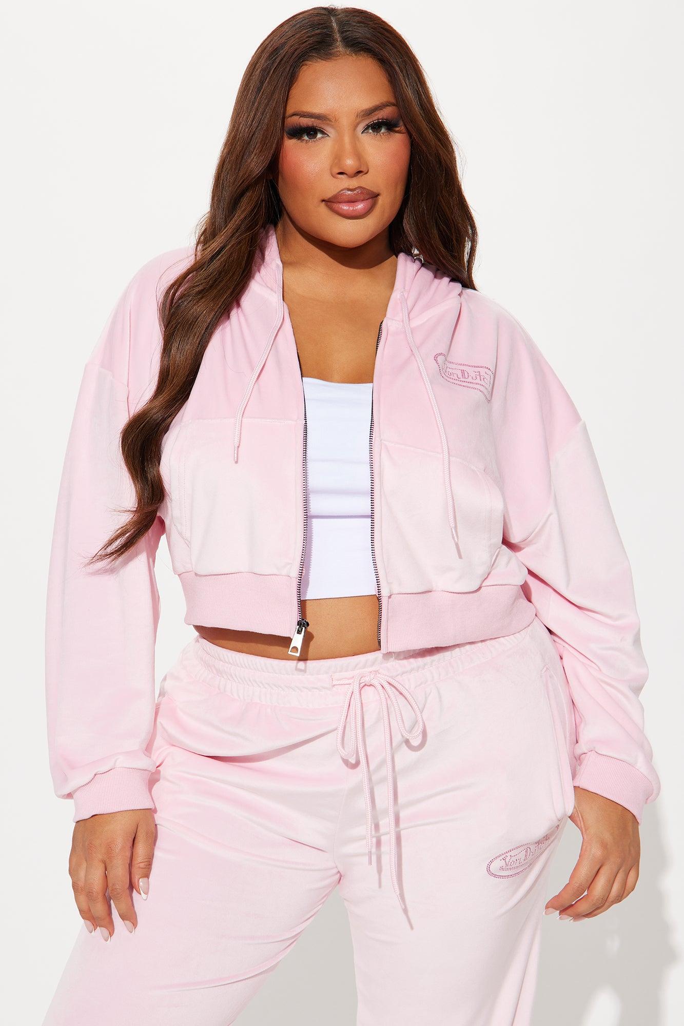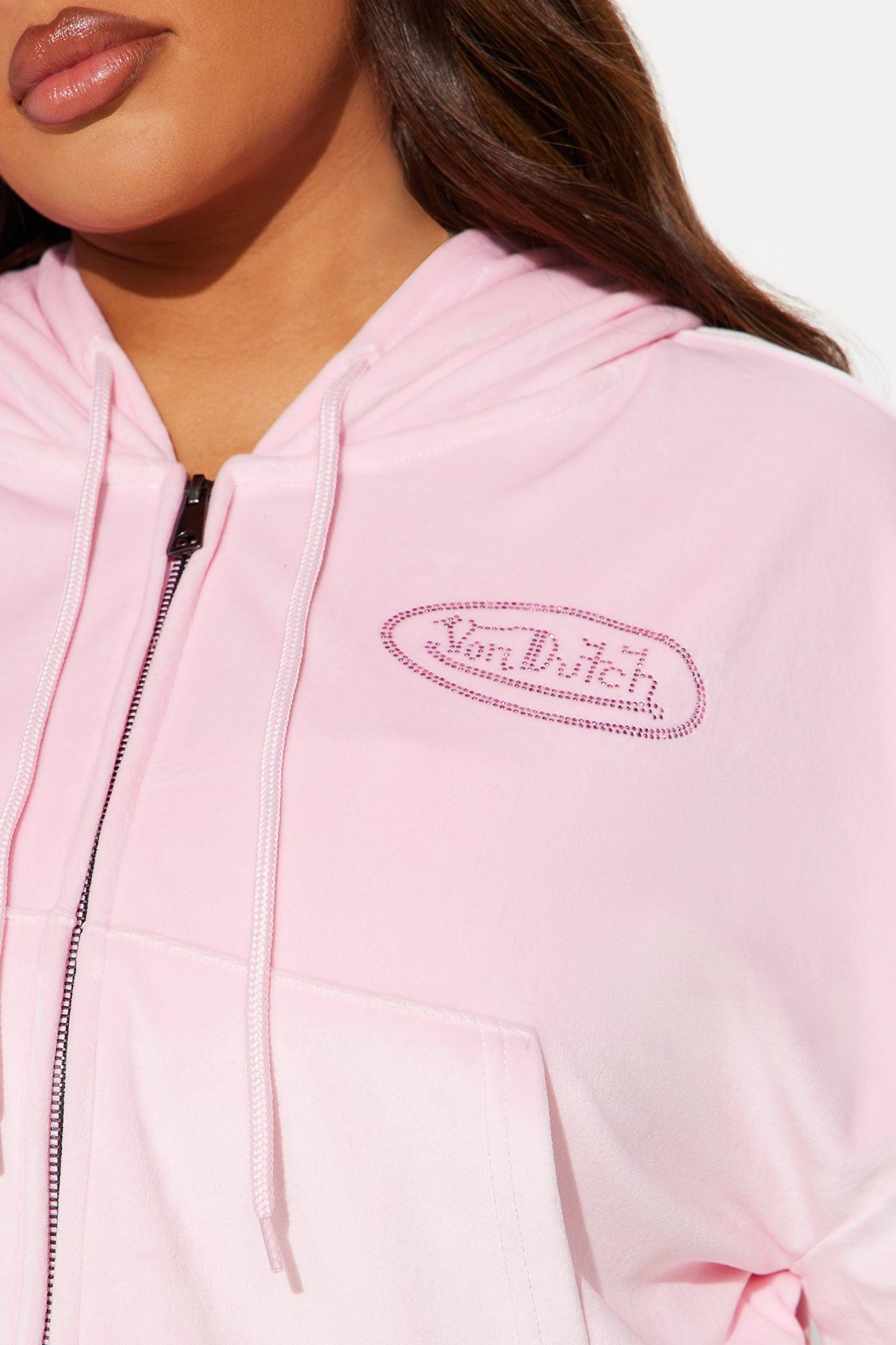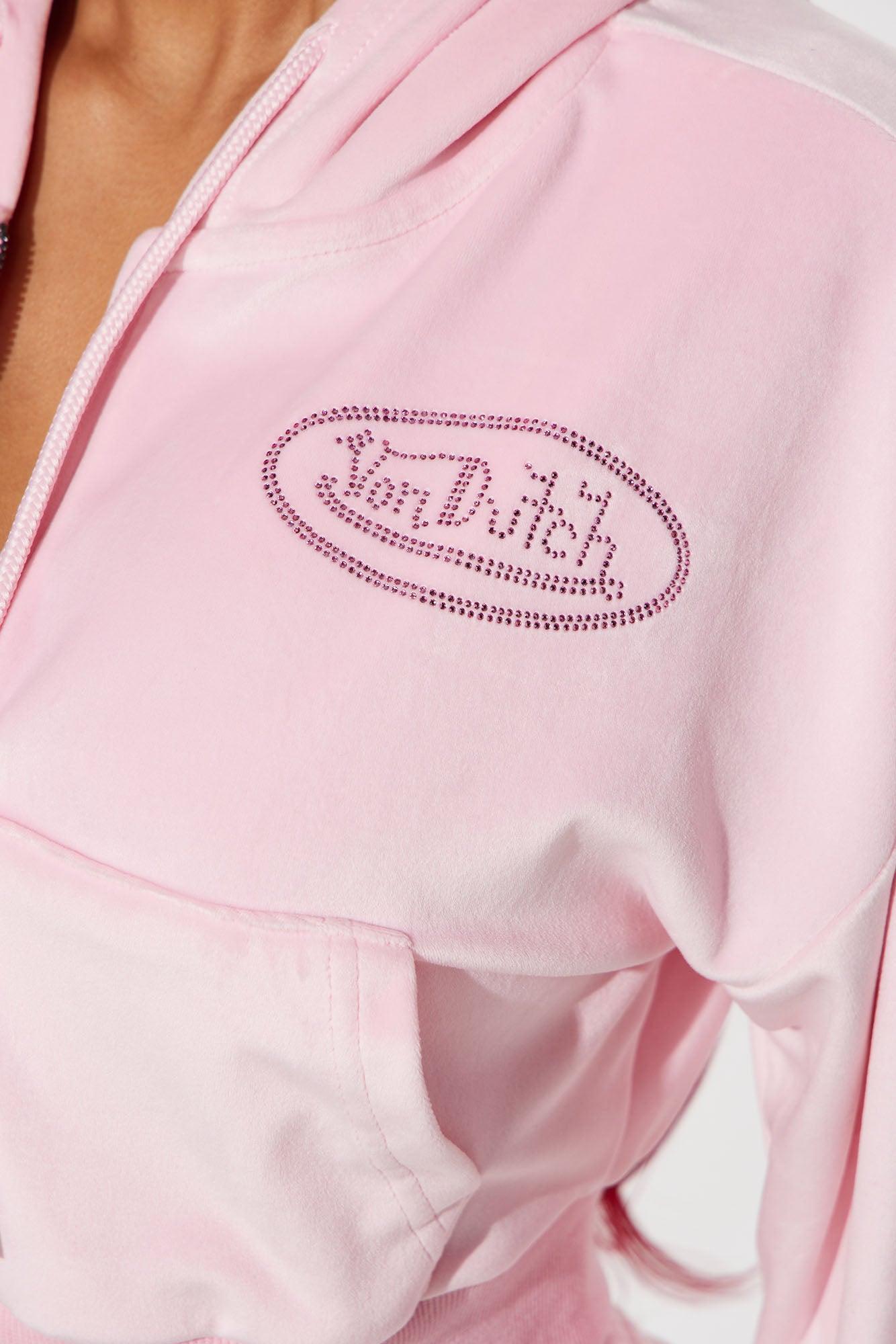 Von Dutch Velour Rhinestone Hoodie - Pink