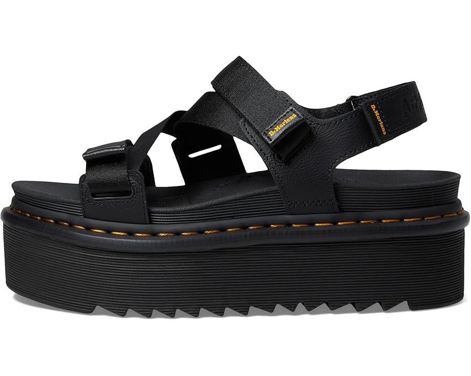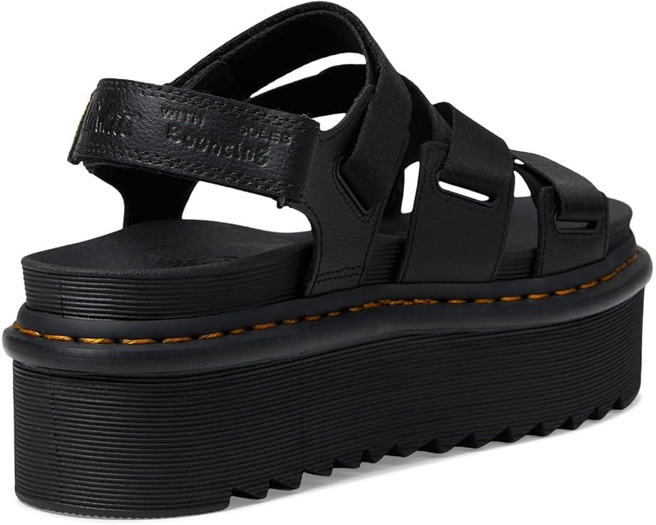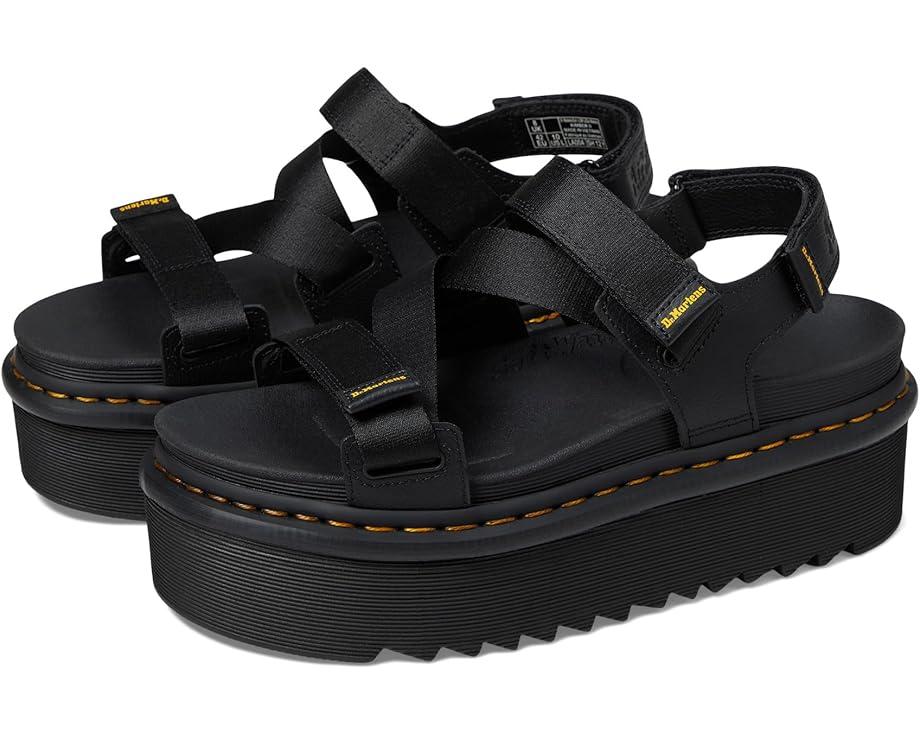 The Dr. Martens® Kimber II sandals are designed to offer superior comfort and a bold look. The strappy PU-coated leather upper features multiple riptape straps that provide you with a secure fit. These sandals are crafted with a leather insole and lining. Finished with yellow stitching and Goodyear welt construction, these platform sandals offer superior comfort and durability.