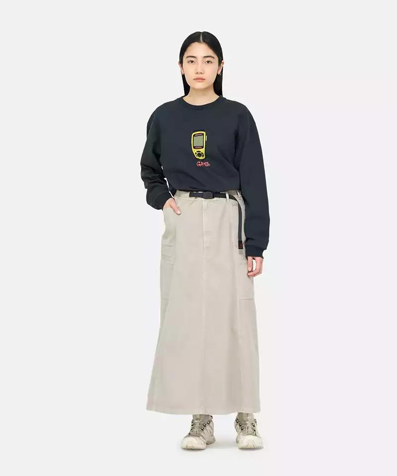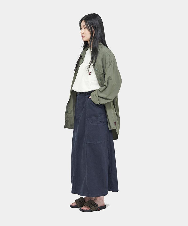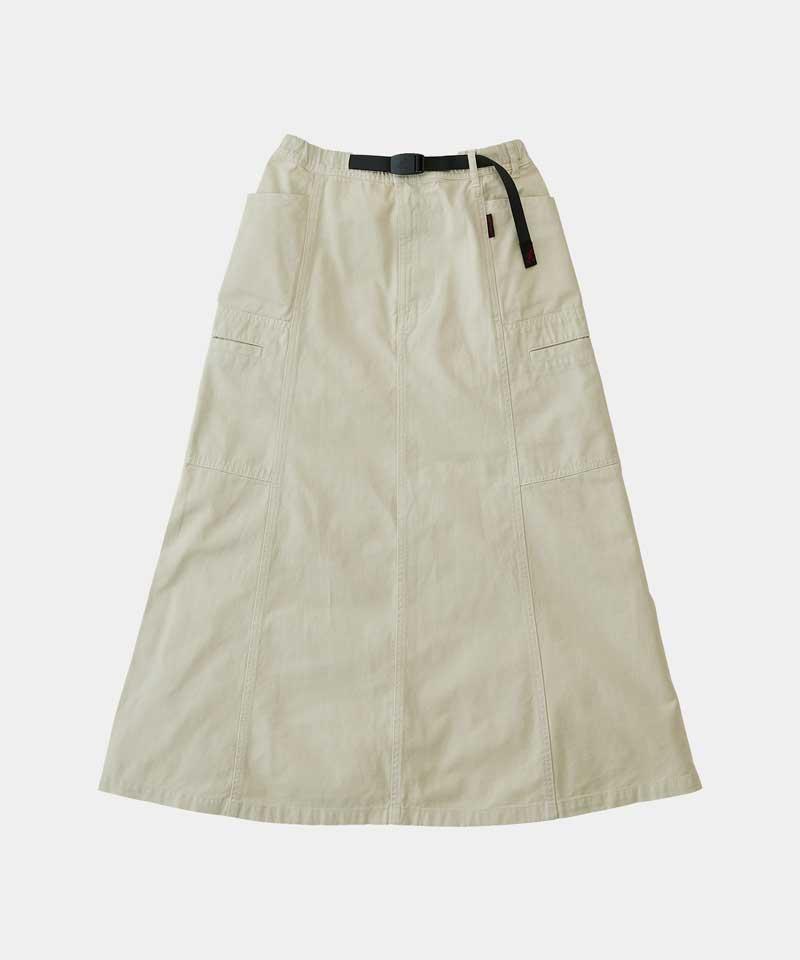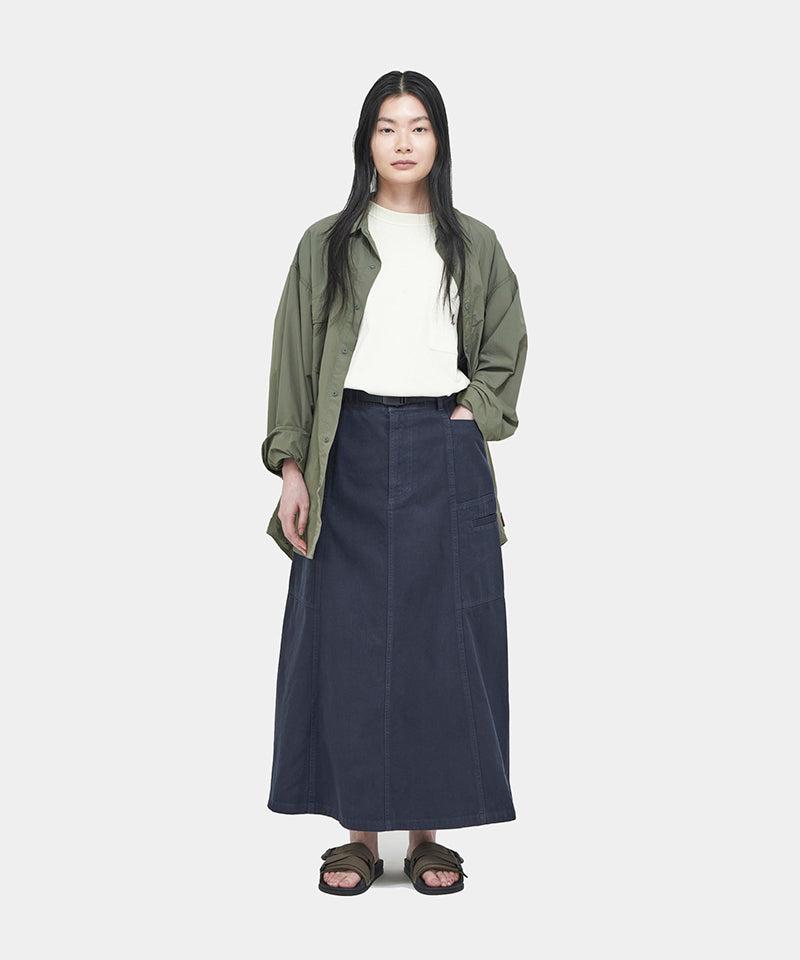 The Voyager Skirt is a maxi skirt with a moderate fit around the waist and a gentle flare from the hips to the hems. This A-line skirt is made with organic twill material that can withstand strenuous movement and is designed to last. The vintage-looking skirt is great for everyday wear or active wear, as it has an adjustable waistband, durable fabric, and a comfortable feel.