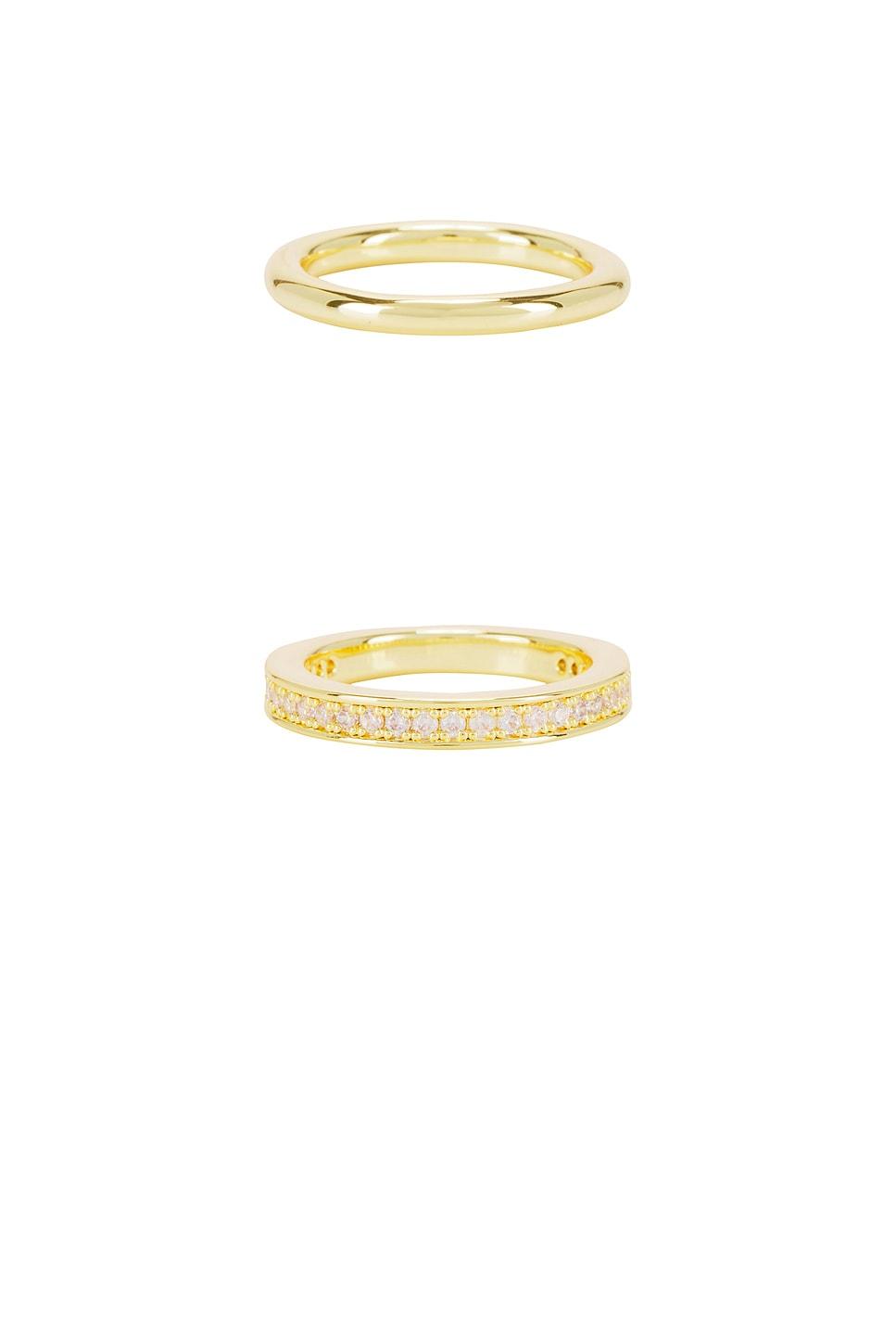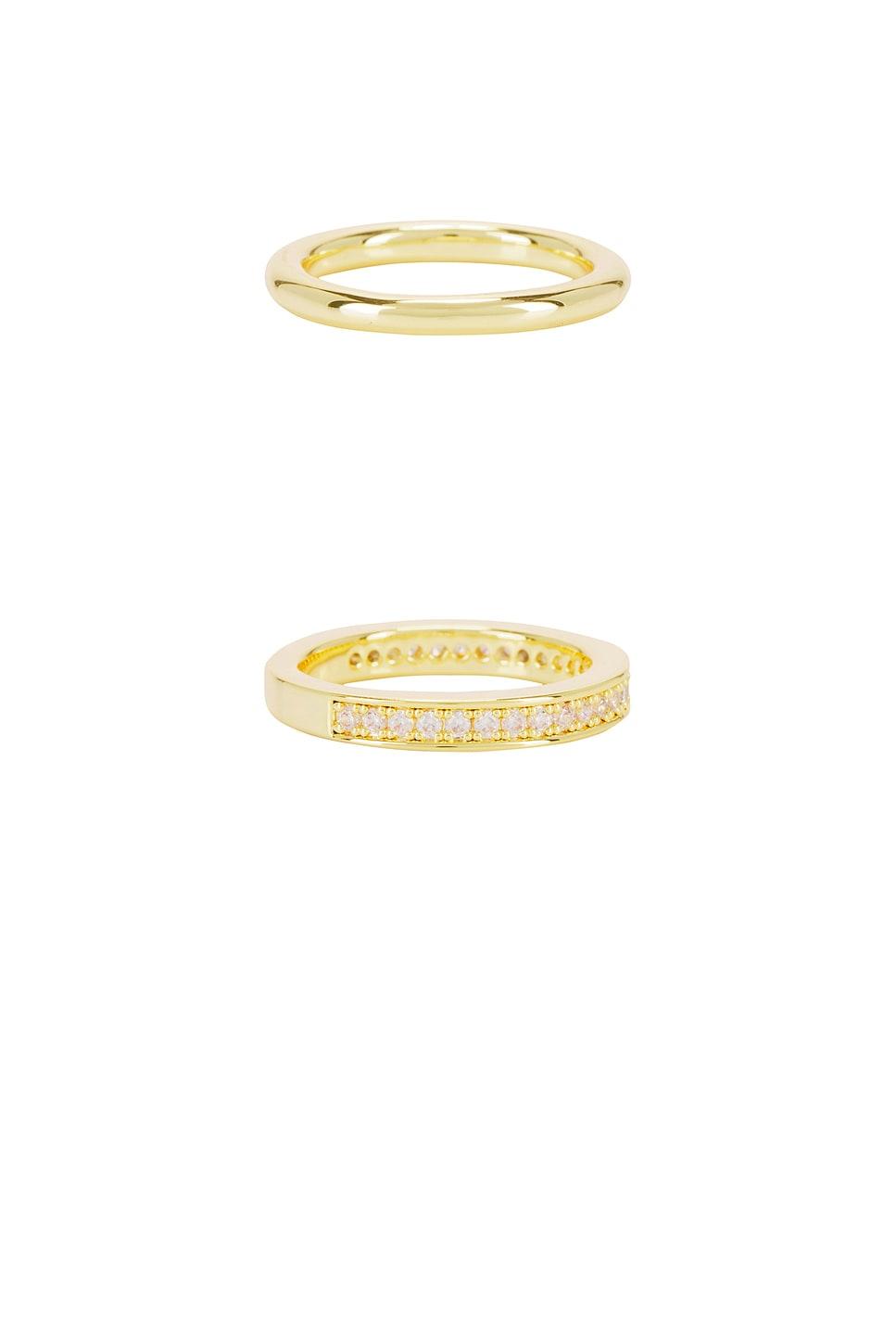 Gold-tone metal bands. Made in USA. Mismatched pair including one with clear crystals. Revolve Style No. SHAS-WL1058. Manufacturer Style No. VROOM.