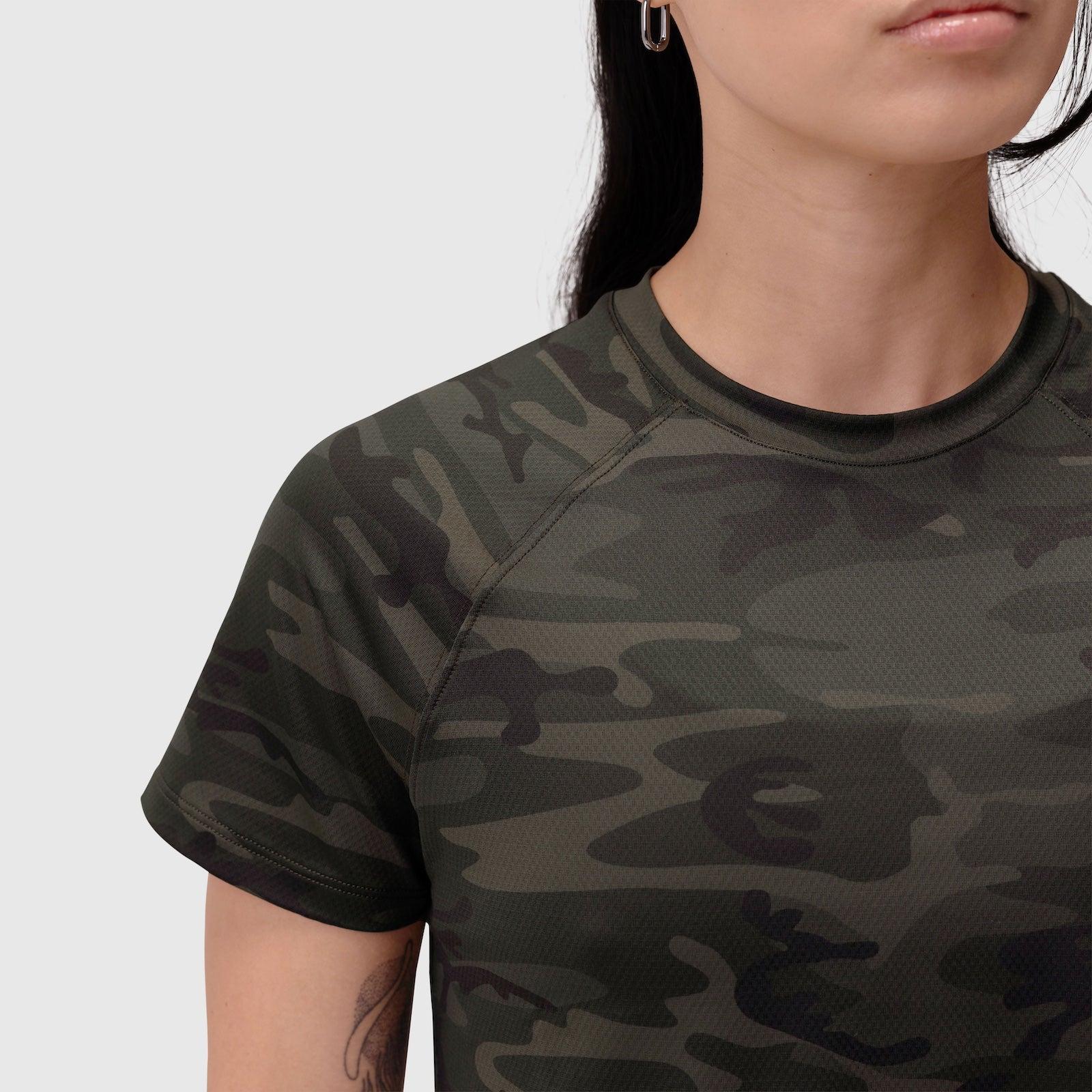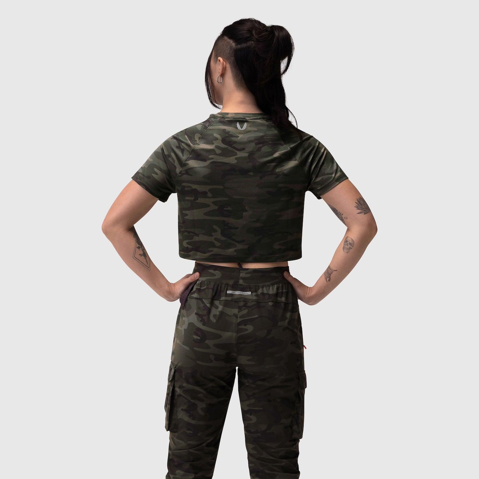 Lightweight mid-crop training tee made from AeroSilver®, our next-generation silver-infused performance fabric built for durability, breathability, and odor resistance. Designed with a curved hem and side splits reinforced with tack seams for added flexibility. Reflective logo details provide visibility during low-light workouts. Model is 5'5" and 127lbs wearing size S.