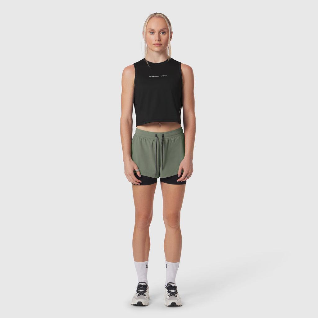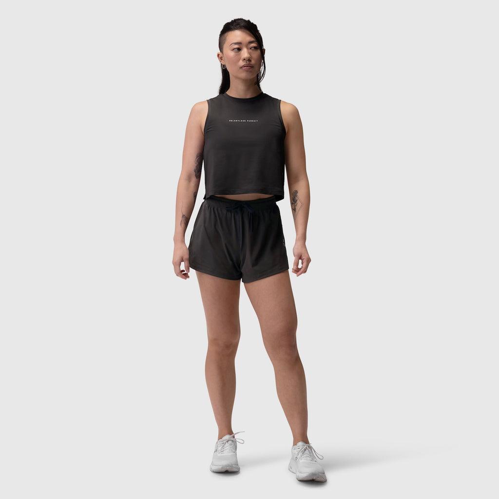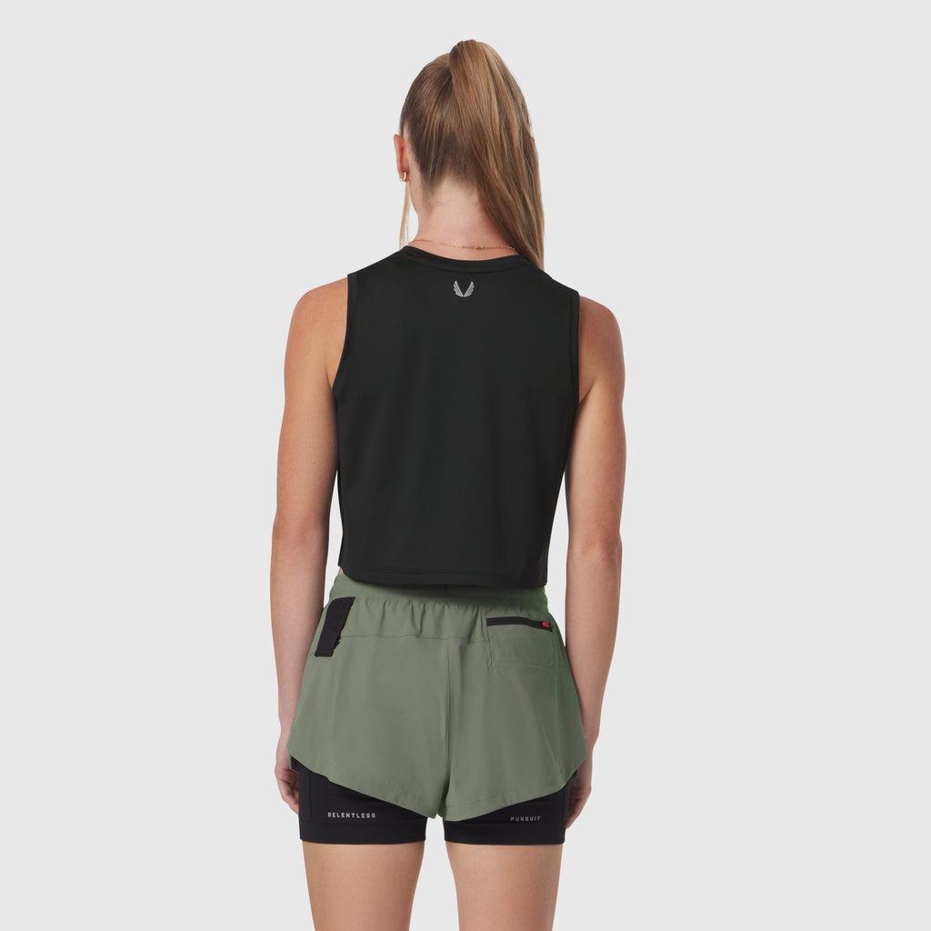 Lightweight mid-crop training tank constructed from AeroSilver®, our silver-infused performance fabric engineered for durability, odor control, and breathability. Designed with a curved hem and side splits reinforced with tack seams for added mobility. Finished with reflective logo details for visibility during low-light workouts. Model is 5'5" and 127lbs wearing size S.