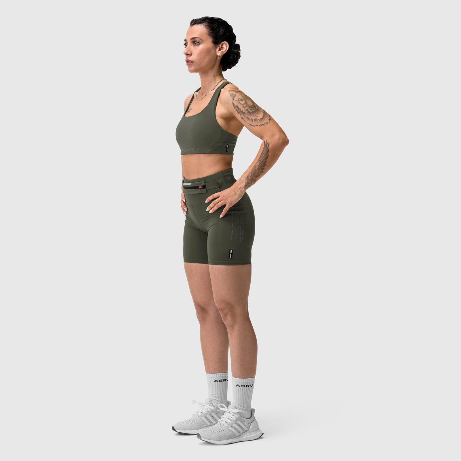 The 3-in-1 biker shorts combine training, running, and lifestyle functionality. Made from patented Lycra® fabric with improved durability, stretch, and updated shape retention for a more secure fit. Designed with dual side pockets and a removable belt featuring an expandable phone compartment. Finished with a magnetic buckle, reflective logo, and tonal branding. Model is 5'2" and 108lbs wearing size XS.