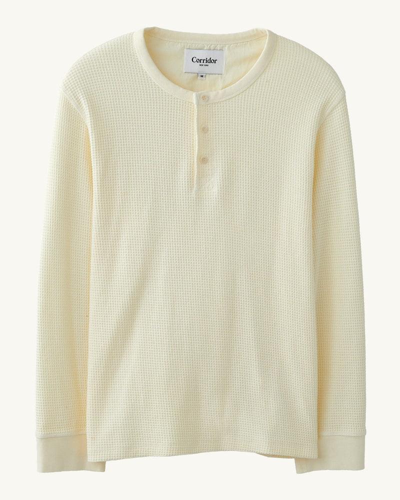 A mid-weight Henley in 100% cotton waffle knit, garment-washed for softness and texture. Finished with a classic three-button placket for structure. A staple that layers under everything. 100% Cotton Soft waffle knit thermal Vintage wash Made with care in Portugal TS0089 For information on our shipping and retur