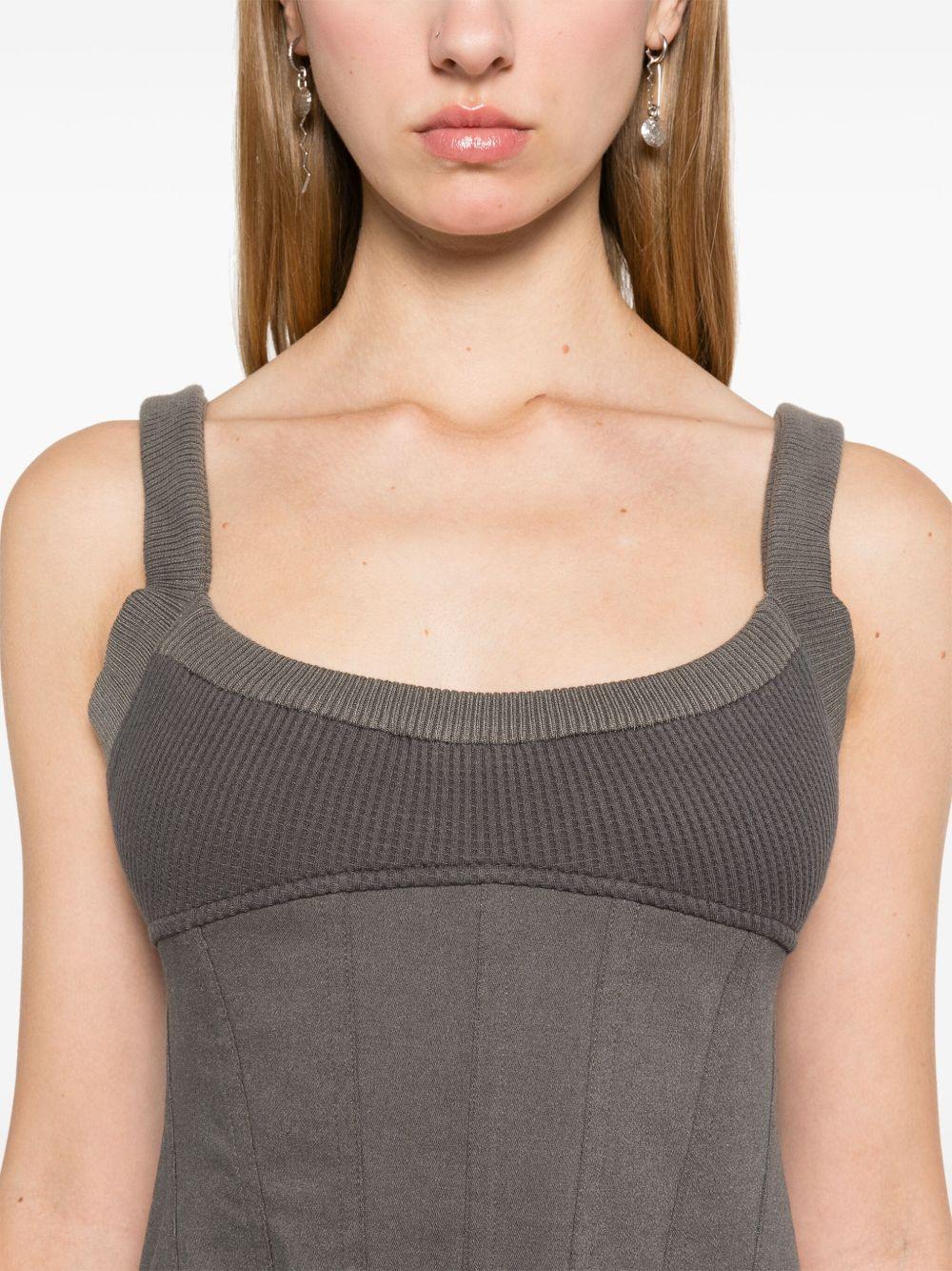 Elena Velez waffle-knit corset mini dress | Grey | charcoal grey | cotton blend | twill weave | waffle knit panel | corset style | ribbed trim | rear zip fastening | U-neck | thin shoulder straps | seam detailing | A-line skirt | raw-cut hem | thigh-length | Cotton/Spandex/Elastane | Day Dresses | Dresses | Clothing | Women