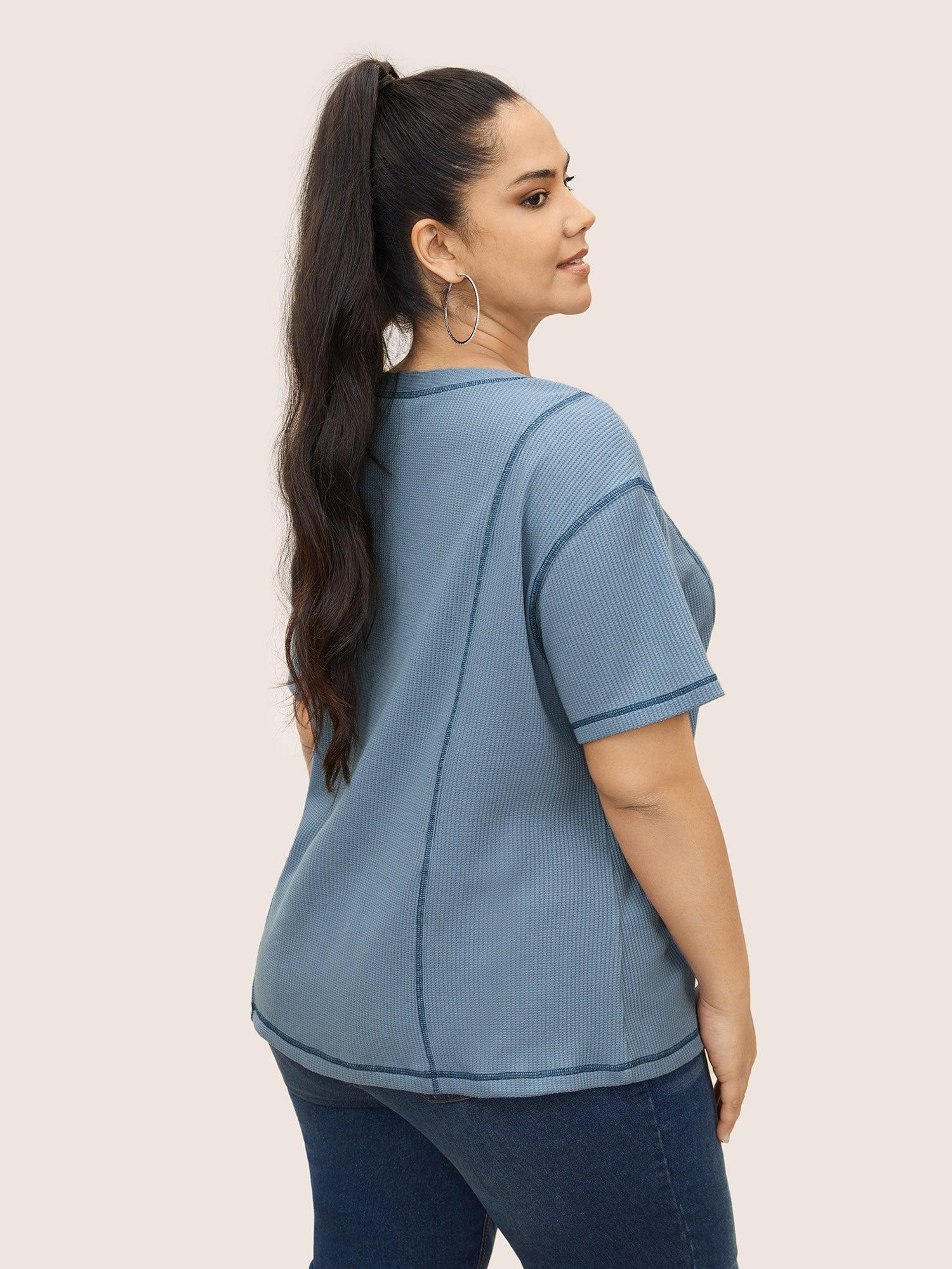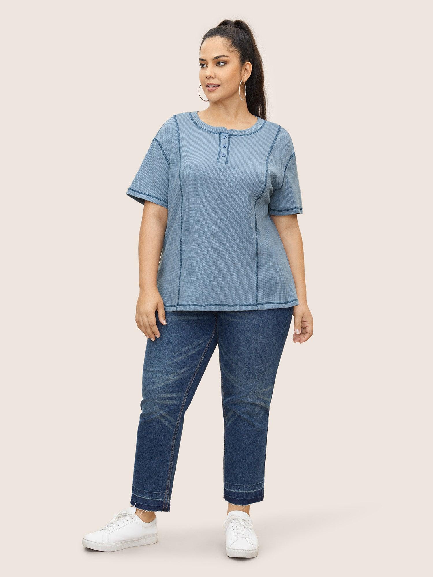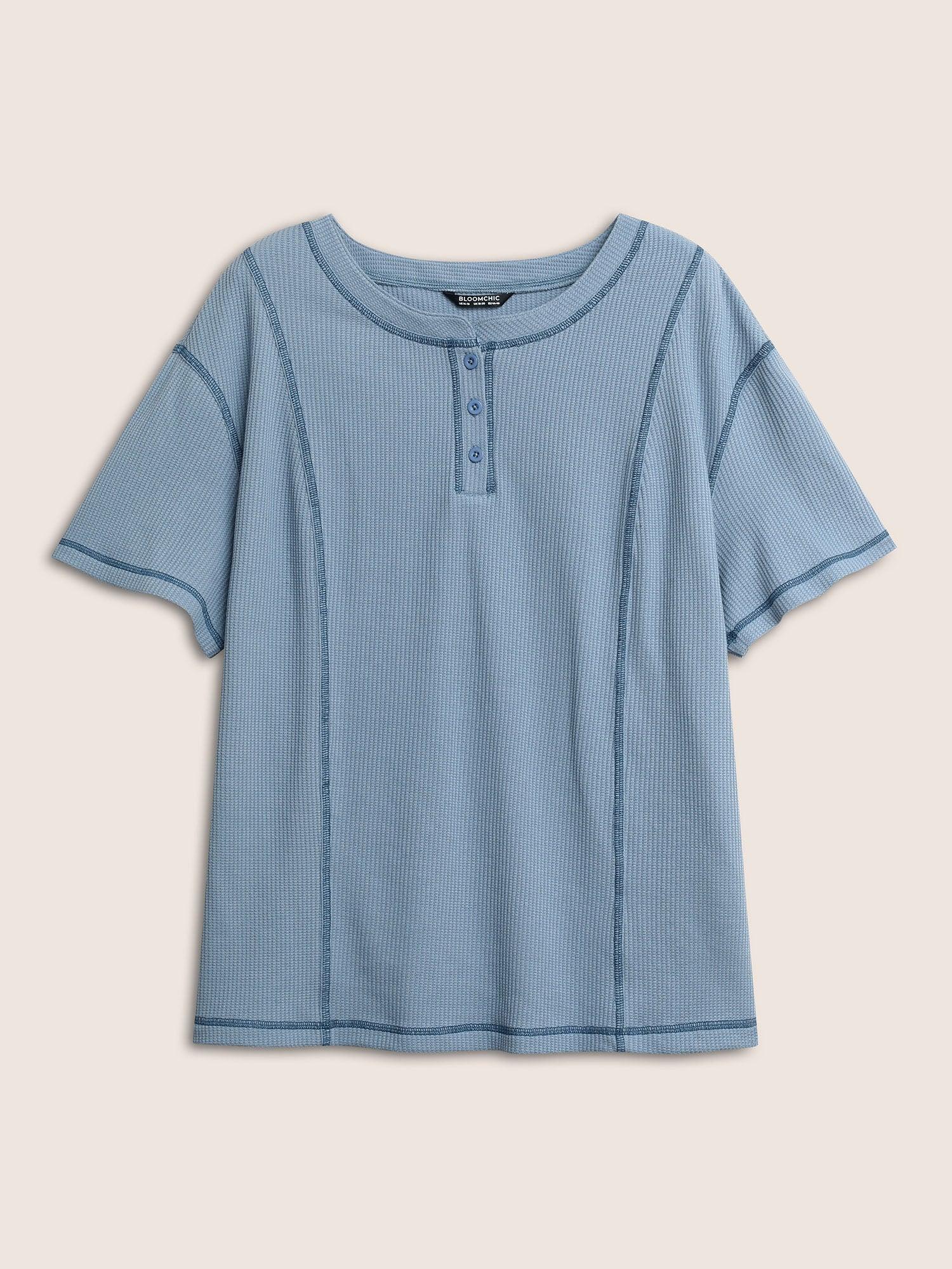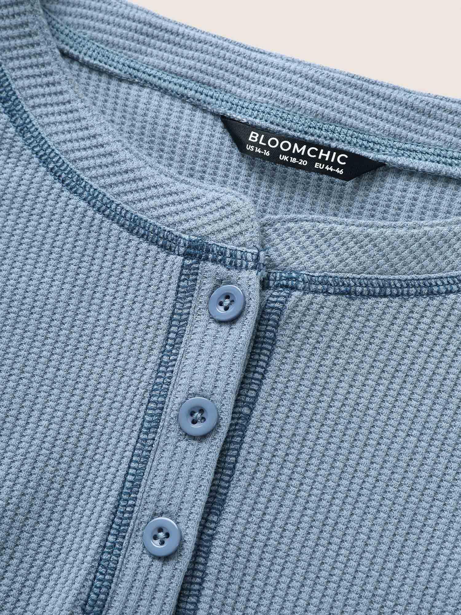 Shop Waffle Knit Round Neck Button Up T-shirt now and redefine your style with confidence at BloomChic. Tailored for mid and plus-size women. This trendy Tops Women, sizes 10-30. Season:Summer;Color:Stone;Style:Casual;Prints:Non;Neckline:Round Neck;Sleeve Type:Regular Sleeve;Details:Button;Pocket:No-pocket
