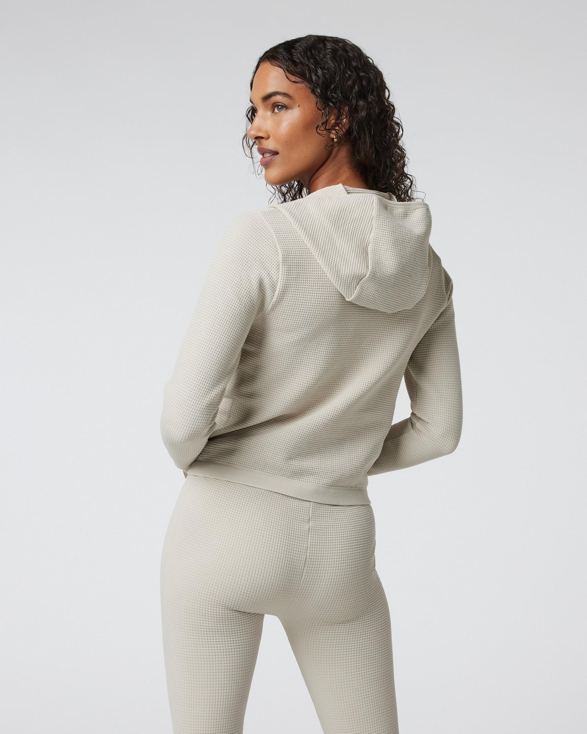 The women's Waffle Seamless Zip Hoodie is easy to wear for low-impact recovery days and lounge sessions. Shop this Ecru waffle knit sweater.