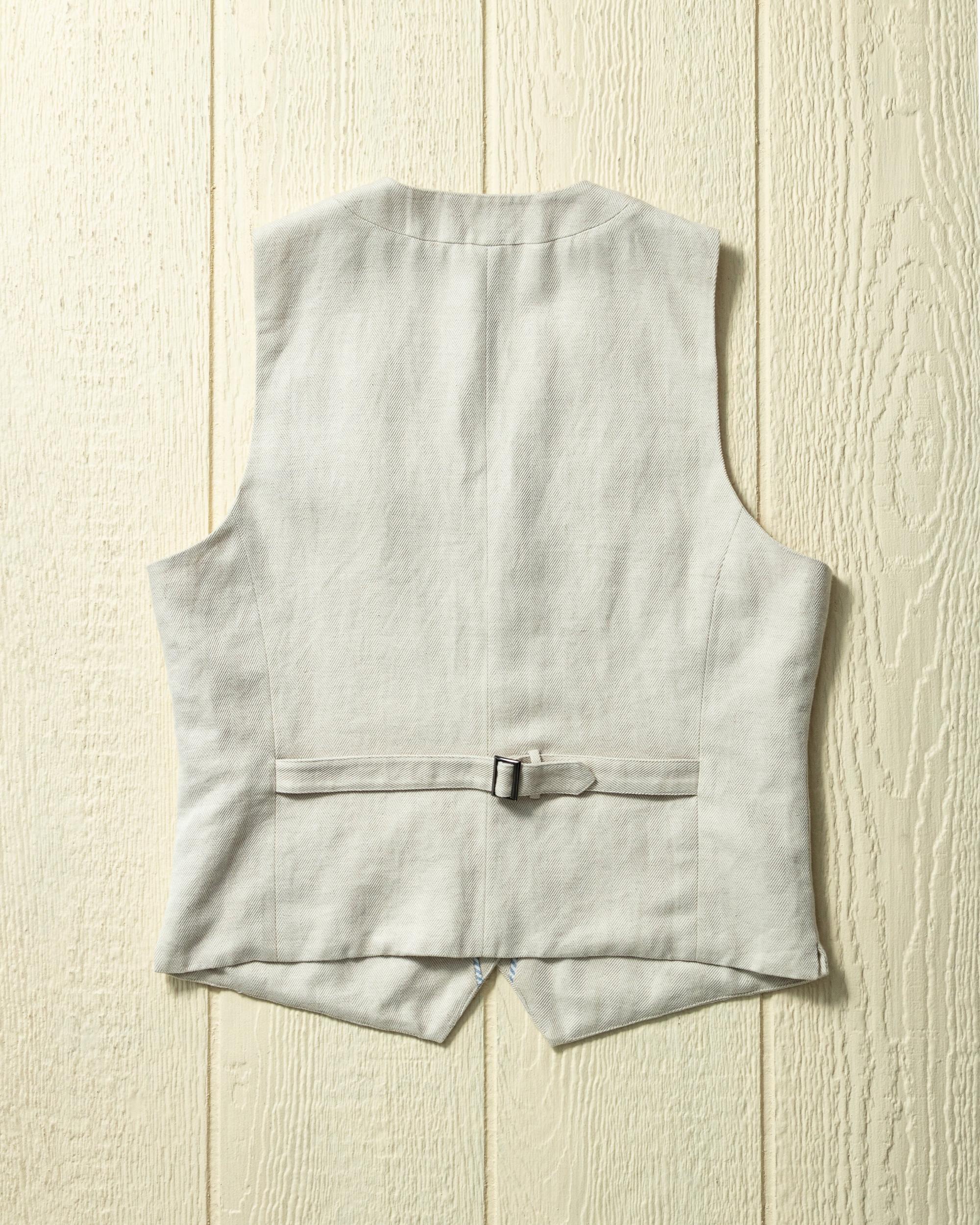 Our Waistcoat draws inspiration from formalwear of yesteryear, but is far from it. It is made from a cotton linen blended herringbone: hearty, lightweight, and effortlessly stylish.