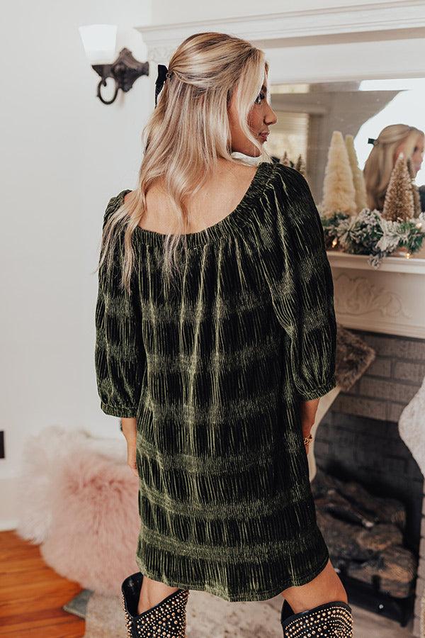 - Stay fall fashion chic in this beautiful dress! - Unlined velvet material with a pleated textured stripe pattern - An elastic scoop neckline with an off shoulder option - 3/4 length sleeves with elastic cuffs - A relaxed silhouette that ends in a mini dress length hemline Measurements S : Bust 34", Hip 44", Length 29.5", Sleeve Length 19", Waist 40". M : Bust 36", Hip 46", Length 29.5", Sleeve Length 19", Waist 42". L : Bust 40", Hip 48", Length 30", Sleeve Length 19.5", Waist 44".