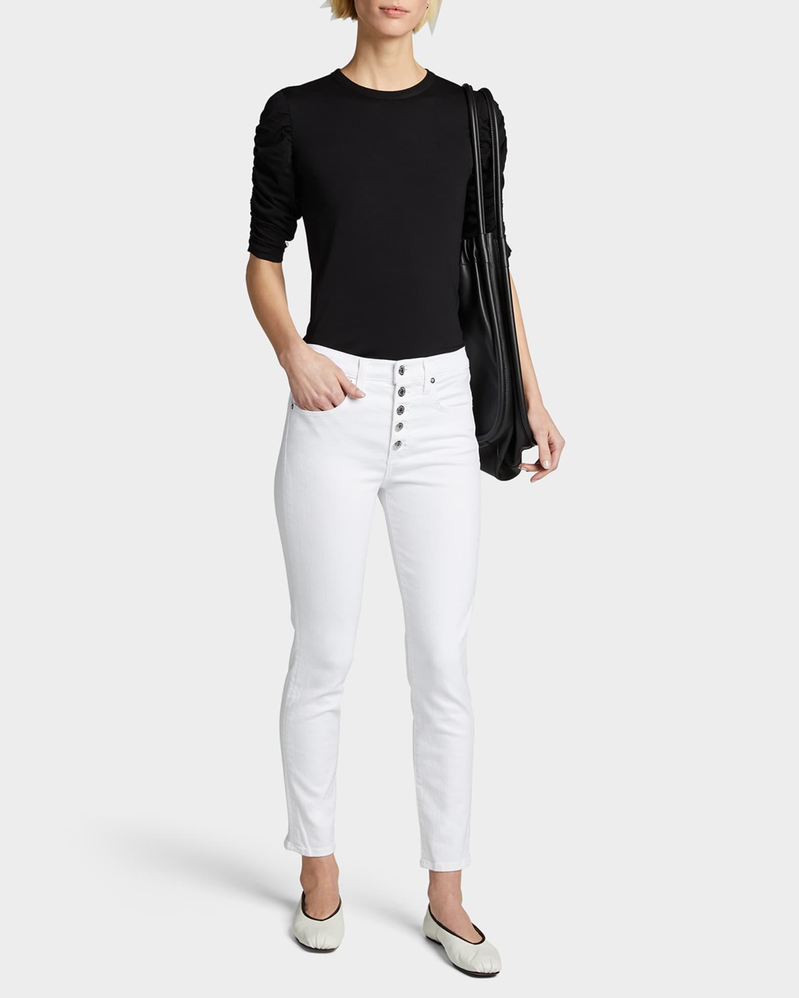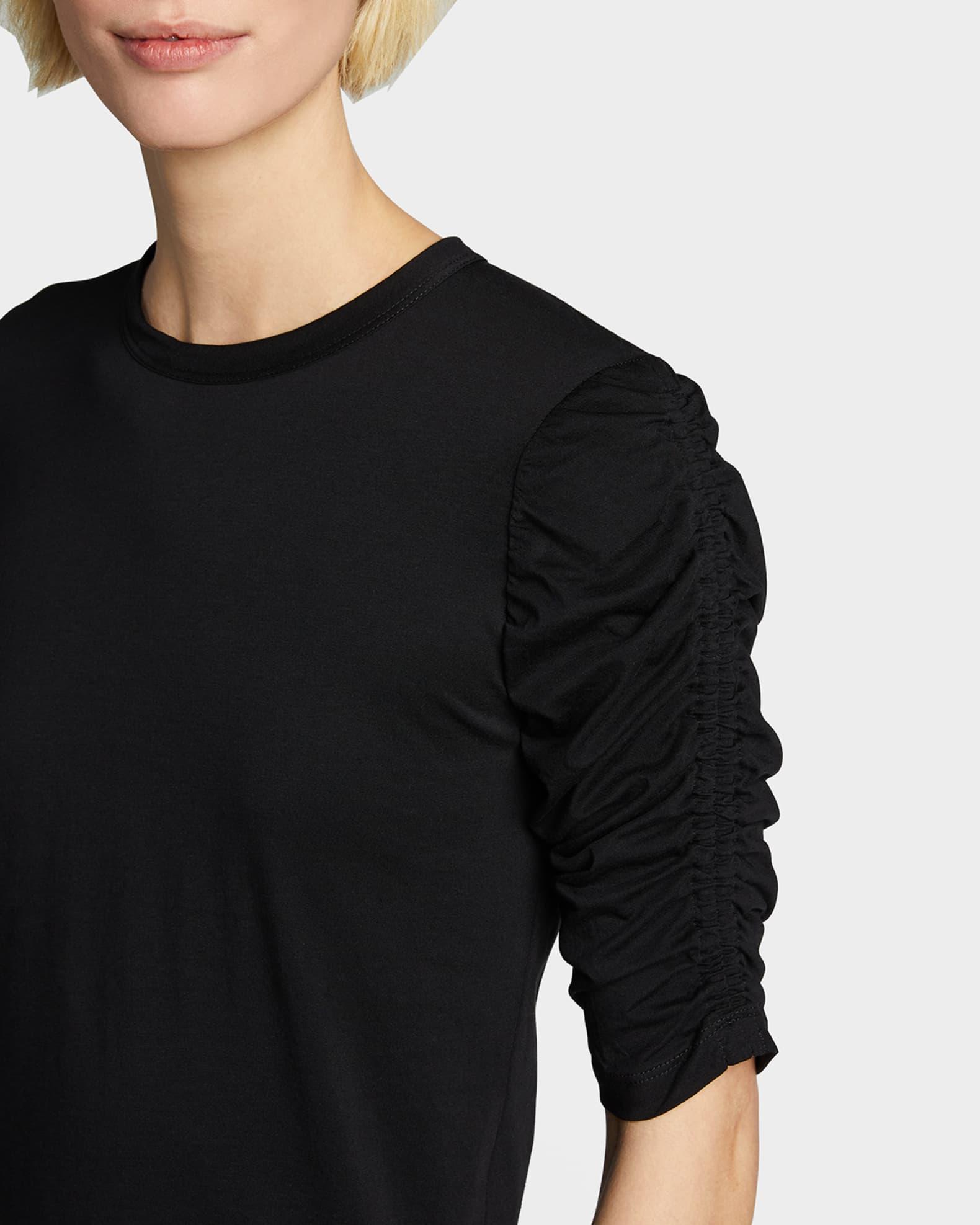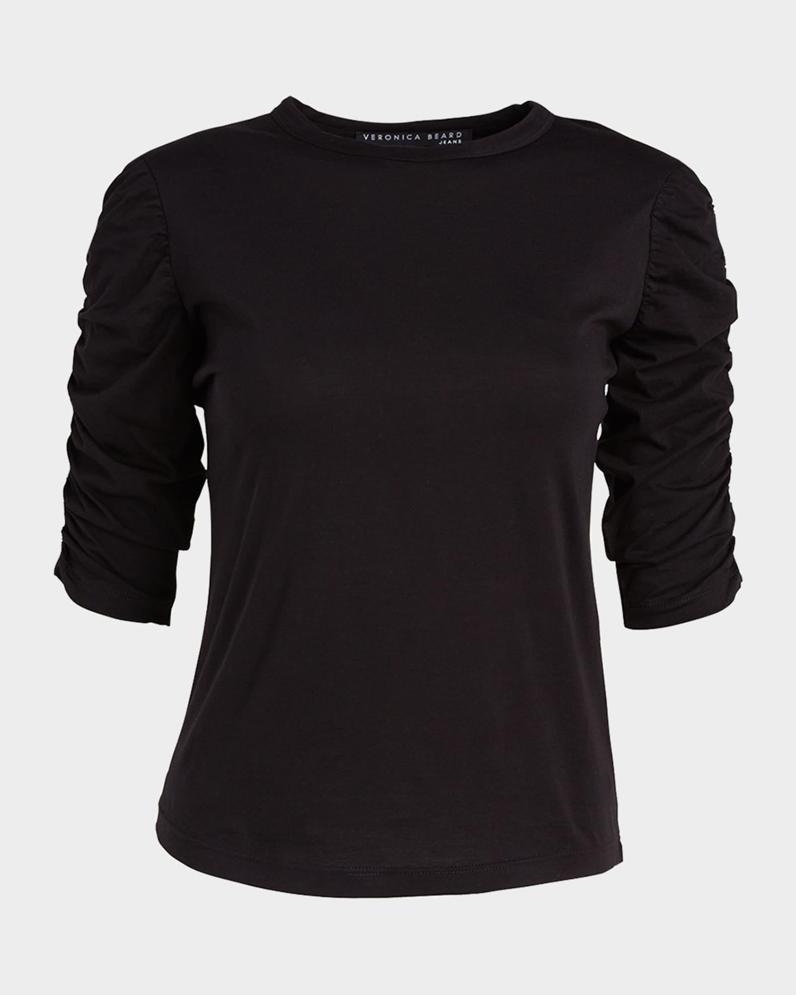 Veronica Beard "Waldorf" tee with shirred sleeves. Crew neckline. Elbow sleeves. Relaxed silhouette. Curved hem. Pullover style. Pima cotton. Made in USA of imported material.