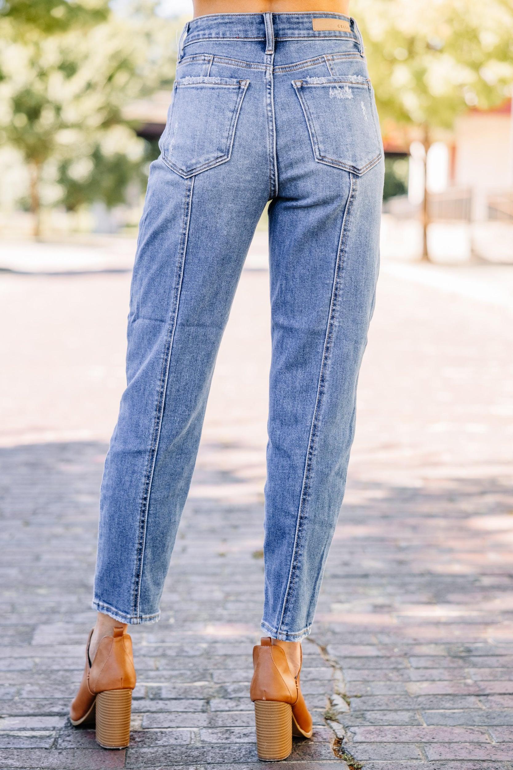 We could not just walk on by this pair of jeans! They are so cute and comfy! These are the most perfect mom jeans around! We love the angular pockets too! They add the perfect amount of sass! These features pockets, a button/zip front closure, and a tapered leg. Material has no amount of stretch.Cam is wearing the size 1.