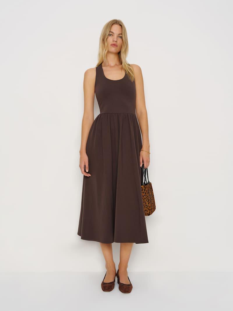 Wear the dress. Shop the Walker Knit Dress from Reformation, a sleeveless midi dress with a fitted bodice and full skirt.