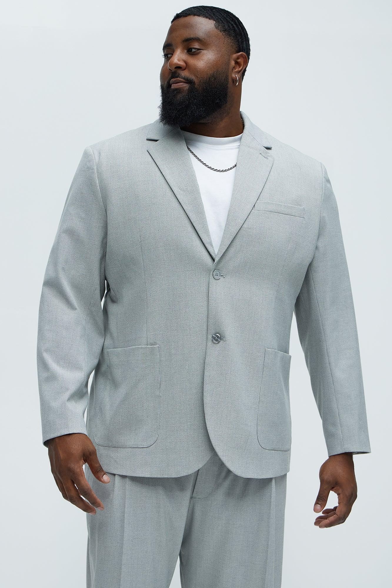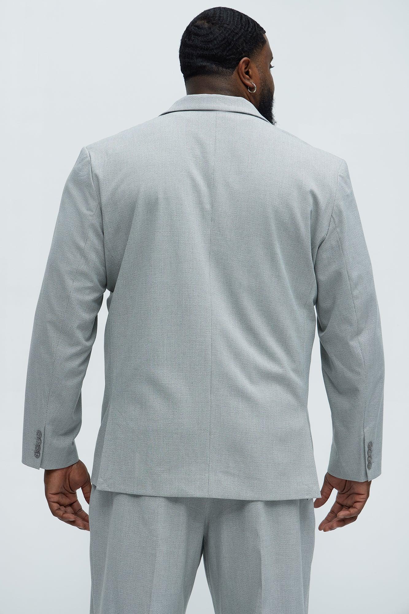 Available In Grey. Pointed Lapels Front Button Closure Side Pockets Front Pocket Cuff Button Detail Shell: 68% Polyester, 28% Rayon, 4% Spandex Lining: 100% Polyester Pair With "Wallace Houndstooth Texture Relaxed Tapered Trousers" Imported