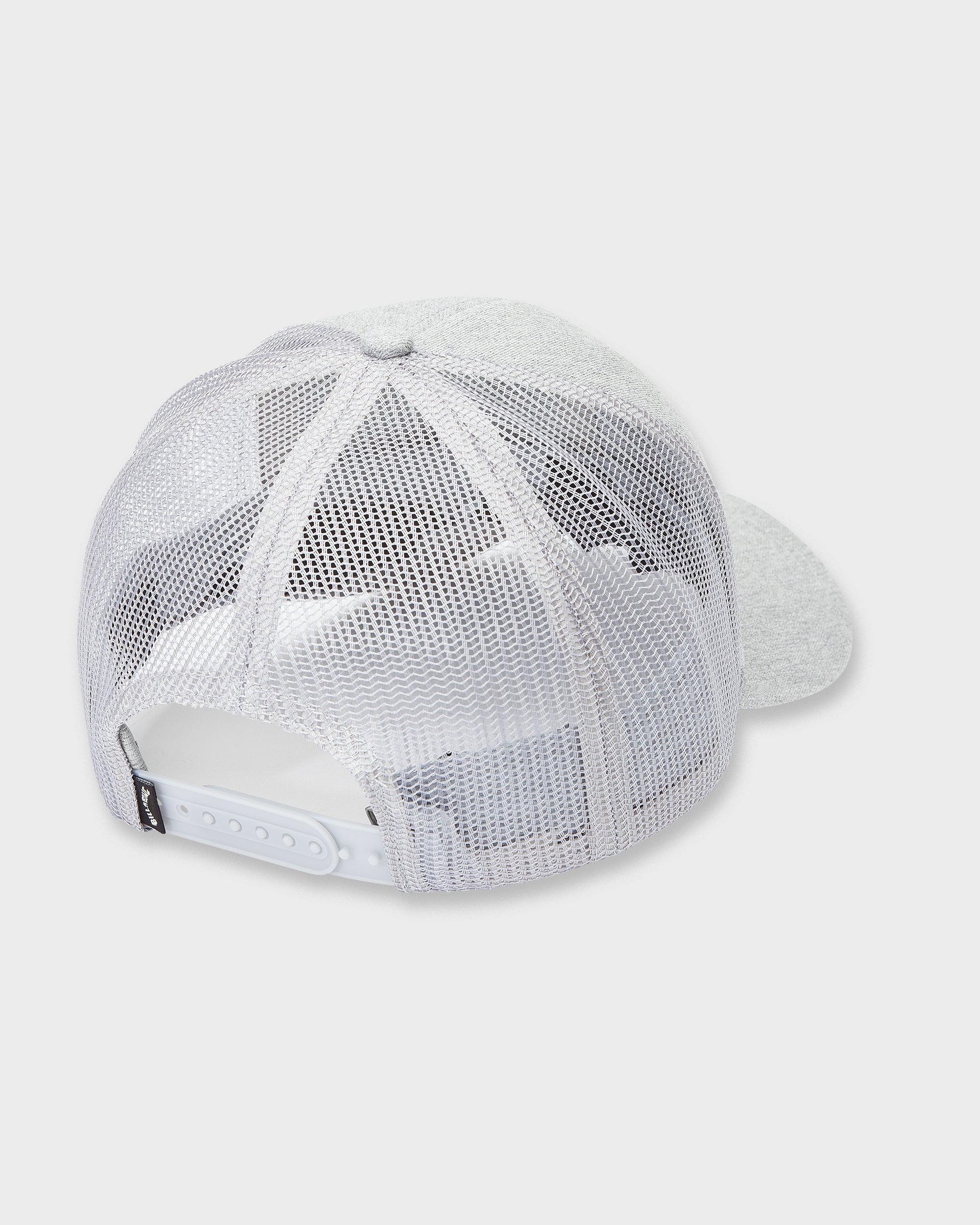 Rep your surf style with this eye-catching trucker hat from Billabong. Its high-profile, 6-panel unstructured crown and mesh back keep you cool. The curved brim offers sun protection, while the adjustable snap ensures a custom fit. Seasonal graphic and woven flag label complete this laidback lid. Featured here in the Gray Heather colorway. Features High Profile Unstructured 6 Panel Trucker With Mesh Back Curved Brim Adjustable Plastic Snap Closure Front Seasonal Artwork And Back Woven Flag Label
