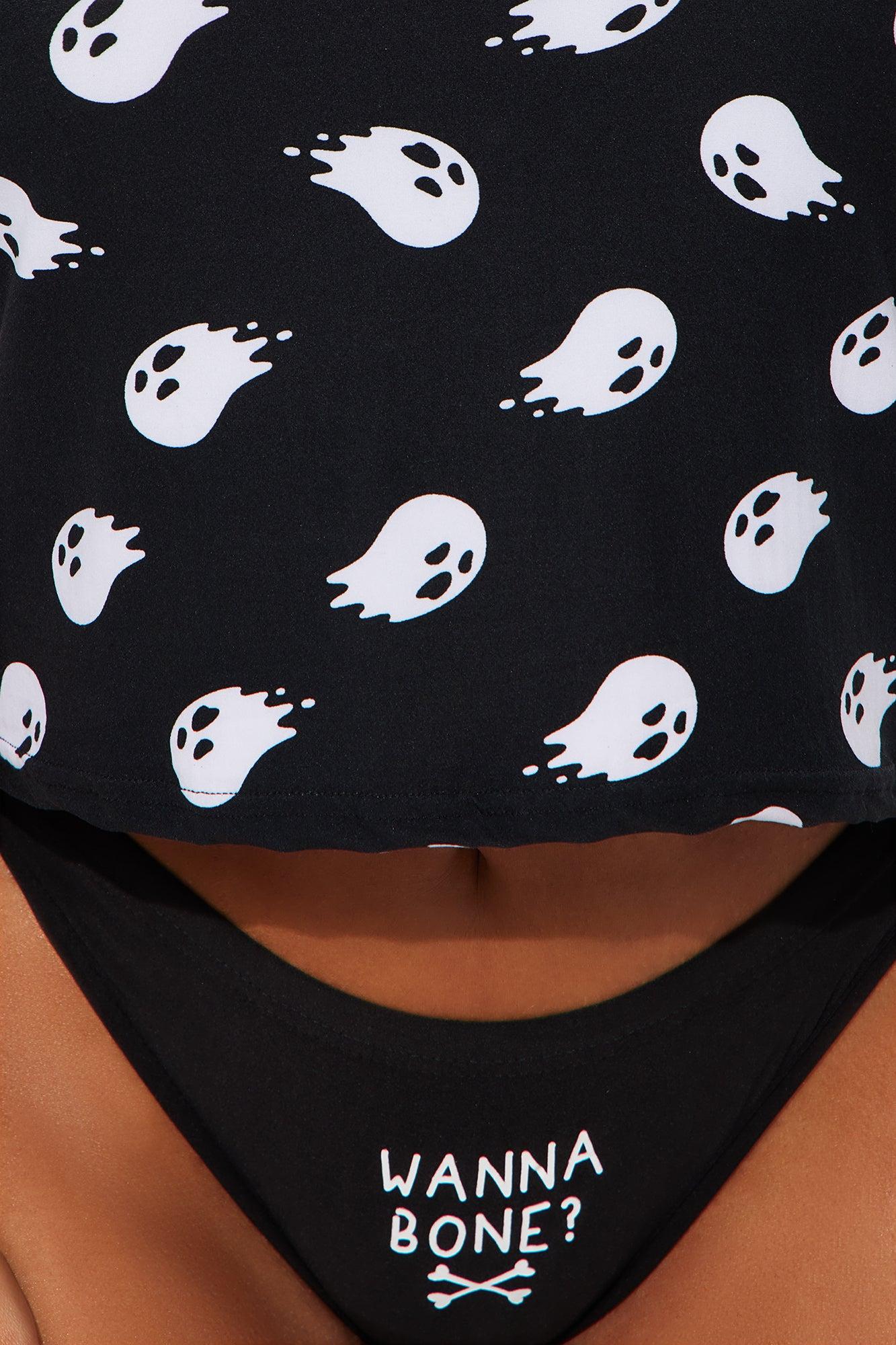 Wanna Bone Halloween Cami And Thong 2 Piece Set - Black/White Female