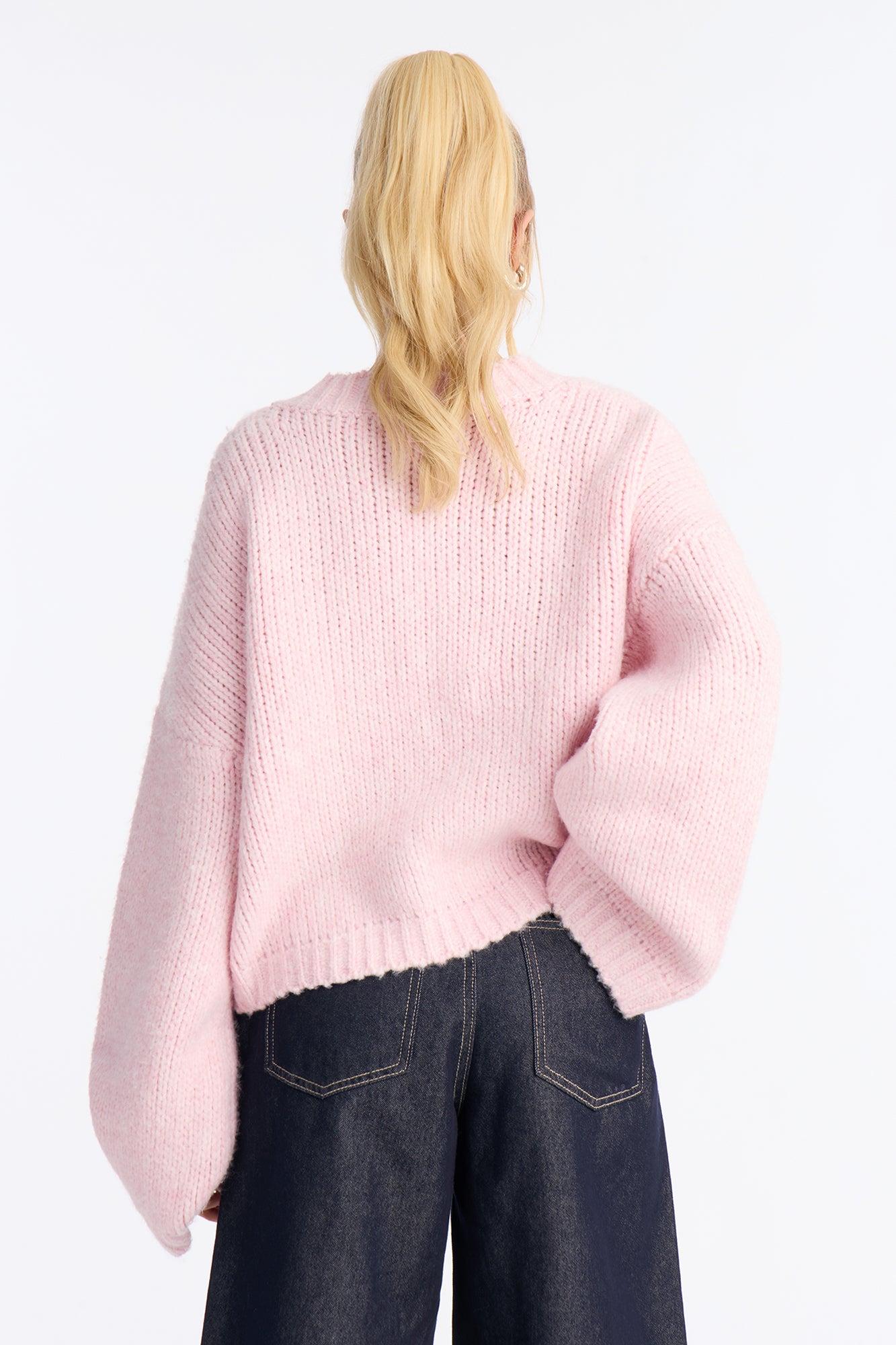 Warm Embrace Oversized V Neck Sweater - Light Pink Female