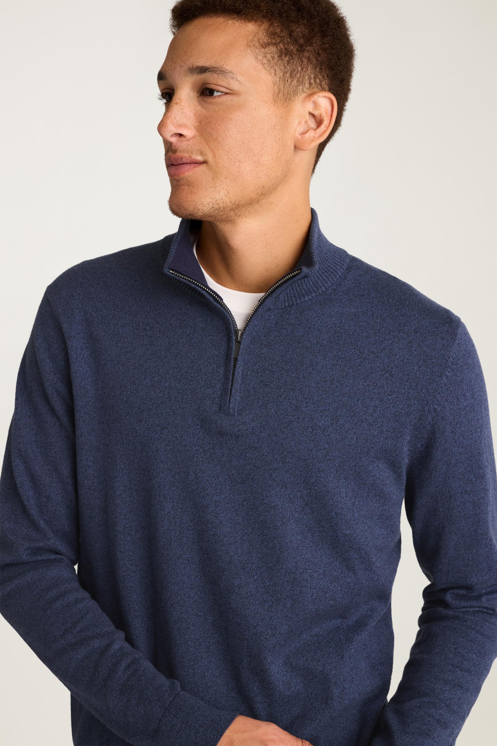 Mens Cotton-Cashmere Fine Weave Quarter-Zip Sweater