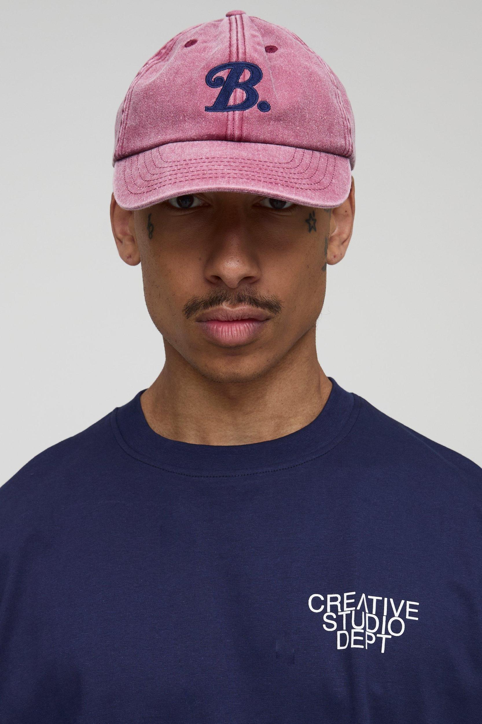 Washed B Embroidered Cap | boohooMAN USA