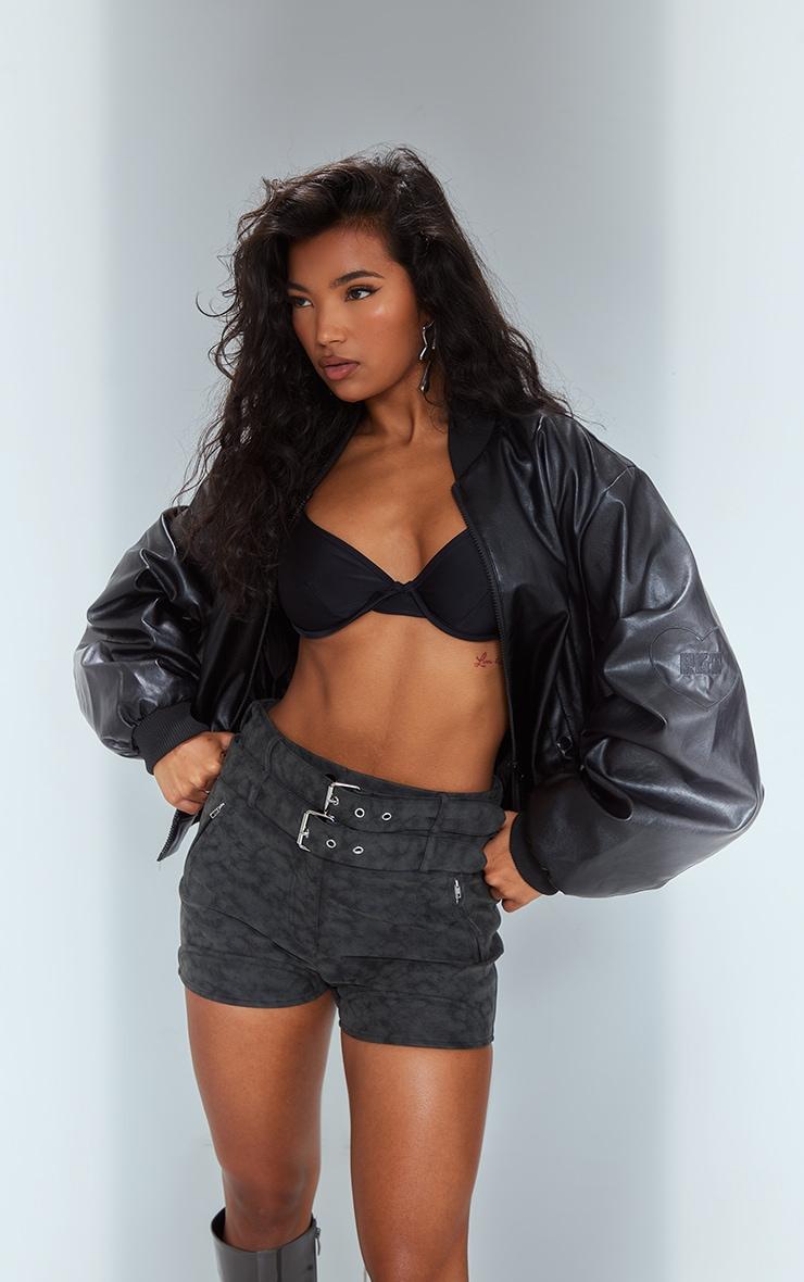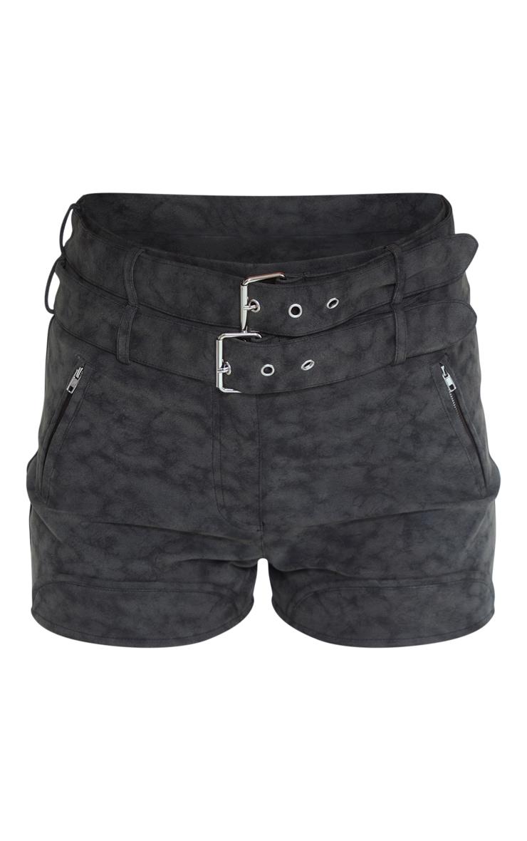 Get ready to add some attitude to your weekend look with this washed black leather belted shorts. Brought to you in a washed black faux leather material with a belted design and a figure-flattering fit, what more could you ask for? Style these faux leather shorts with a bralet, an oversized bomber jacket and knee length heeled boots for a fierce weekend-worthy look that is sure to make heads turn wherever you go. Length approx 33cm/13inch (Based on a sample size UK 8) Model wears size UK 8/ EU 36/ AUS 8/ US 4Model Height - 5ft 6inchp]:!mb-4inch>Category: BottomsProduct type: Tailored ShortsColor: BlackOccasion: Evening