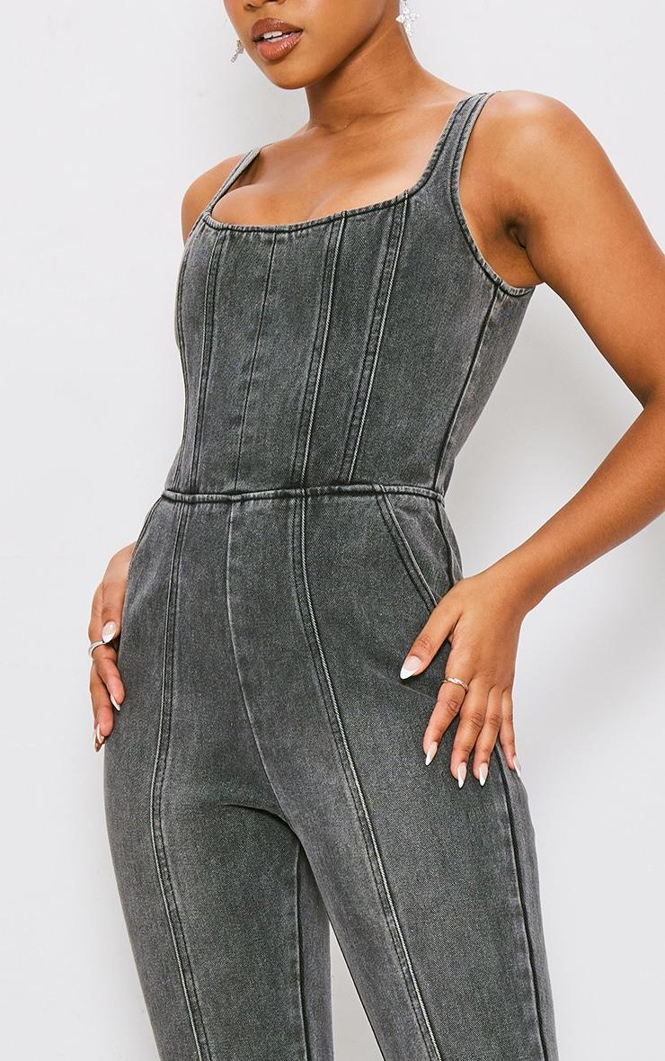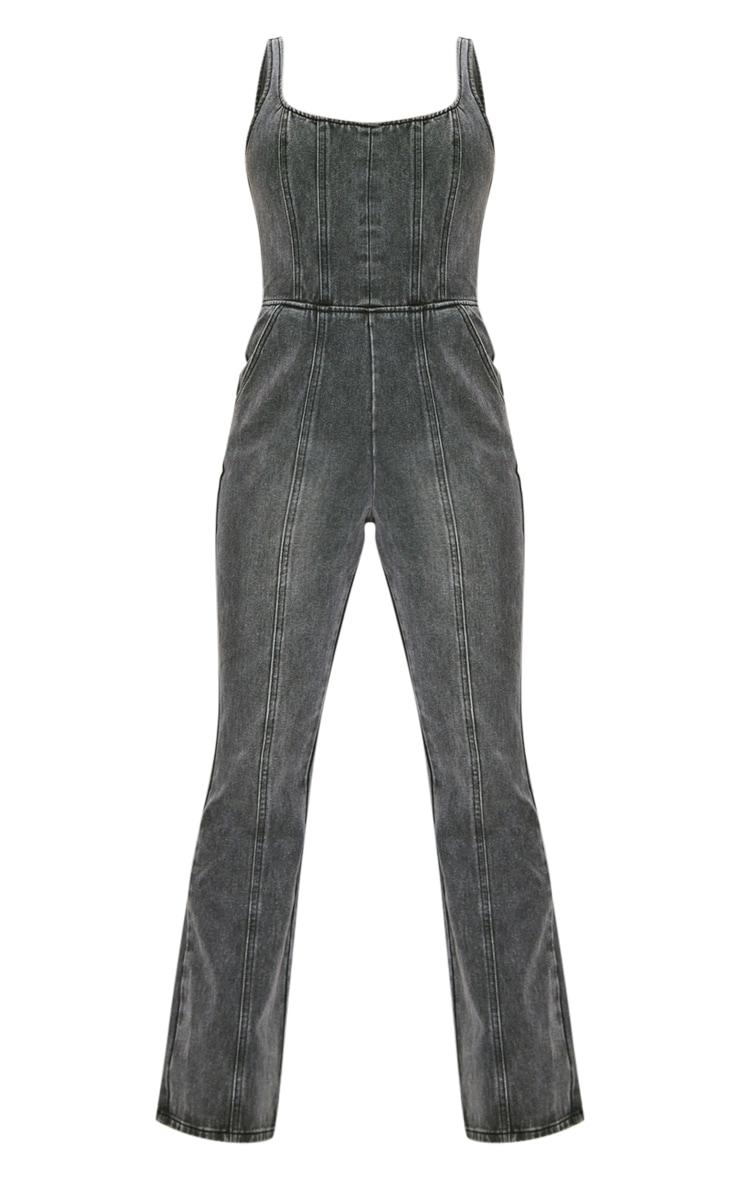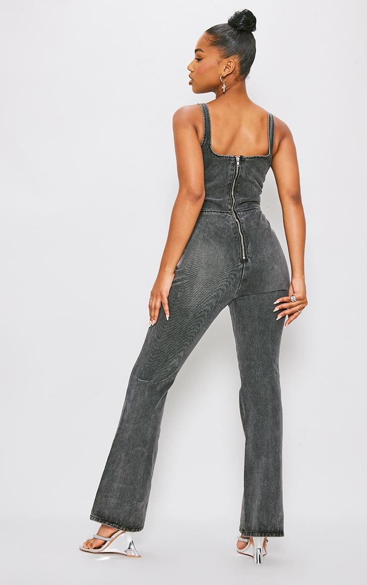 Enter the weekend in style with this washed black seam detail bodice flared denim jumpsuit. Brought to you in a washed black material with a bodice design, seam detailing and a flattering flared leg fit, how can you not be obsessed? No matter what your plans, you will be reaching this denim jumpsuit again and again. Style with heels and some glam accessories for a weekend-worthy look like no other. Length approx 160cm/63inch (Based on a sample size UK 8) Model wears size UK 8/ EU 36/ AUS 8/ US 4Model Height - 5ft 7inchp]:!mb-4inch>Brand: PrettyLittleThingCategory: DenimProduct type: Denim JumpsuitsColor: Washed BlackMaterial: Rigid DenimDesign: PlainNeckline: ScoopSleeves: SleevelessOccasion: Evening