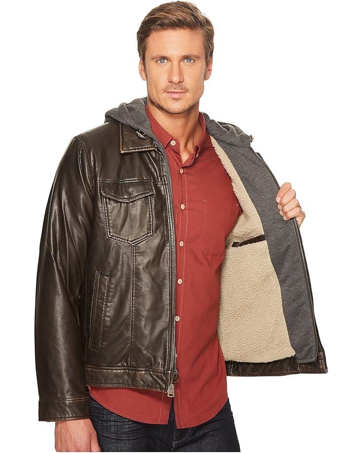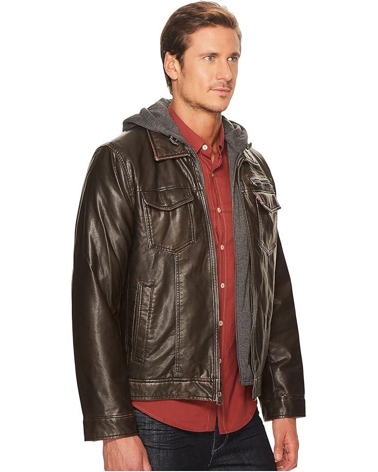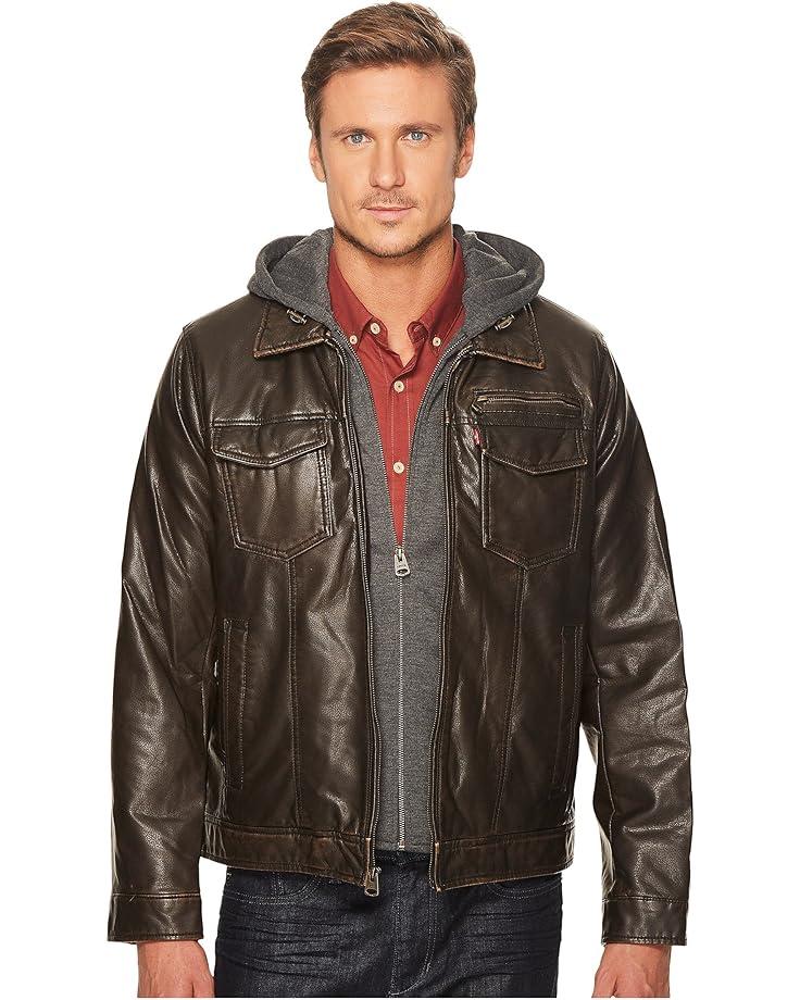 Men's Faux-Leather Trucker with Jersey Hood and Fleece Lining by Levi's® at Zappos.com. Read Levi's® Men's Faux-Leather Trucker with Jersey Hood and Fleece Lining product reviews, or select the size, width, and color of your choice.