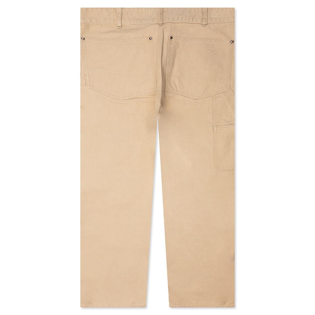 The Washed Duck Work Pants in Beige are made from cotton, offering durability and a structured feel. Designed with a classic five-pocket setup, they include a side seam tool pocket and hammer loop for added utility. Embroidered details and a woven branded patch provide subtle finishing touches to this workwear-inspired design. 100% Cotton 5 Pocket Set Up Side Seam Tool Pocket Hammer Loop Embroidered Detail Woven Branded Patch Style No: HM28PT011-BEI