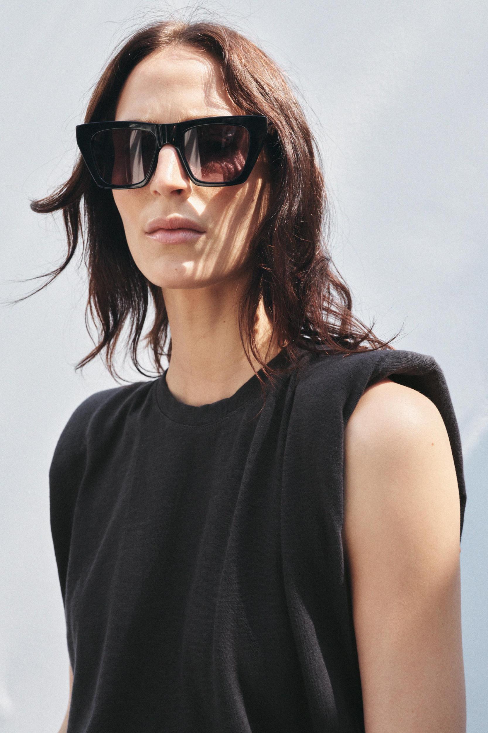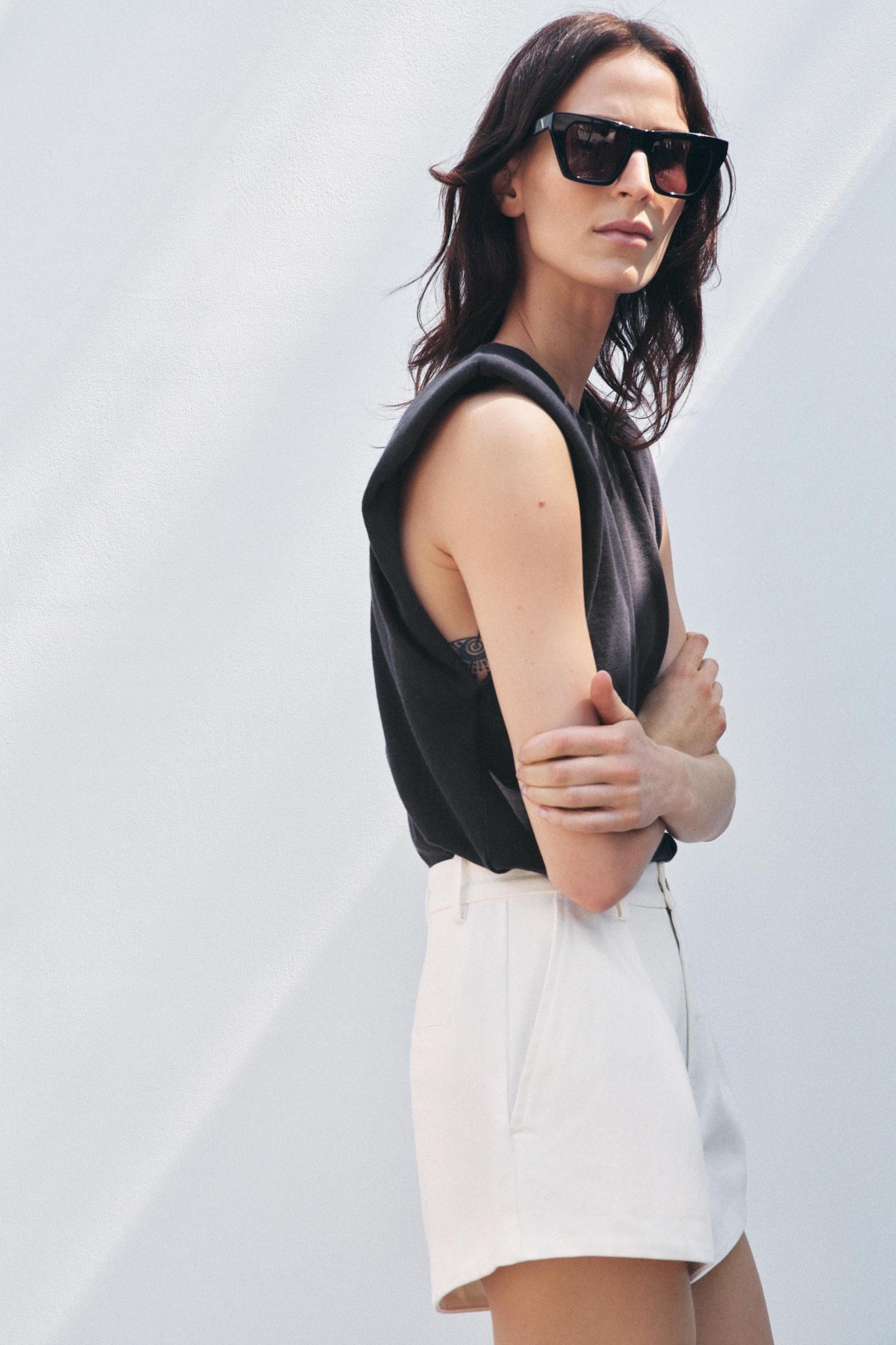 WASHED EFFECT T-SHIRT WITH SHOULDER PADS