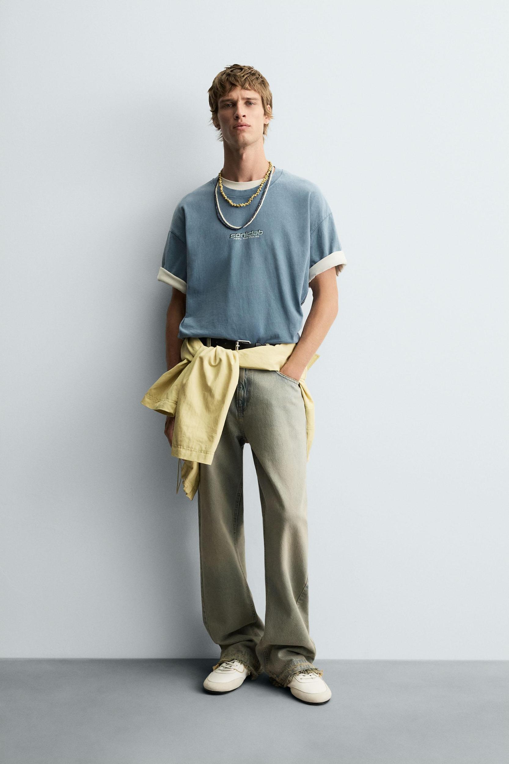 Relaxed fit T-shirt. Round neck and short sleeves. Graphic and text print with contrasting washed effect on the front and back.