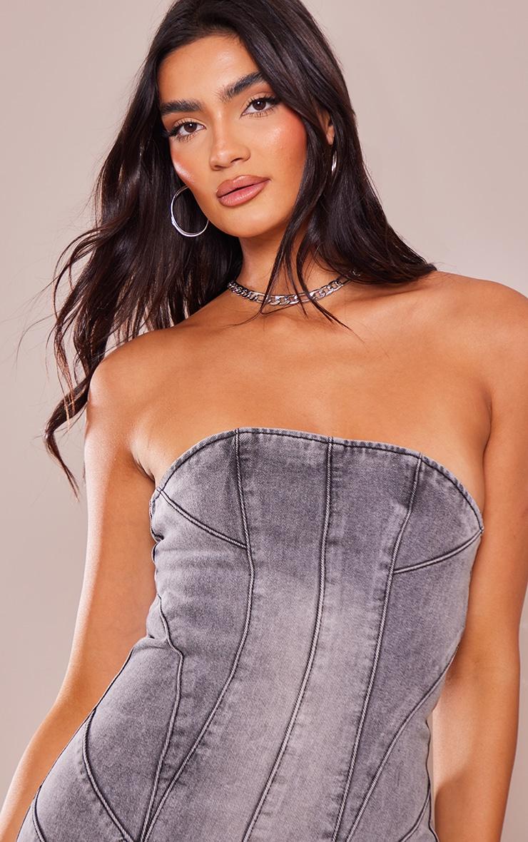 You can never have too many mini dresses, that's why we are loving this washed grey seam detail bandeau denim mini dress. Brought to you in a washed grey denim material with a seam detail and a bandeau fit, we are seriously obsessed. Team this mini dress with your go-to accessories to complete this effortlessly chic look. Length approx 68.5cm/27inch (Based on a sample size UK 8) Model wears size UK 8/ EU 36/ AUS 8/ US 4Model Height - 5ft 9inchp]:!mb-4inch>Brand: PrettyLittleThingCategory: DenimProduct type: Denim Day DressColor: Washed GreyMaterial: Rigid DenimNeckline: BandeauSleeves: SleevelessOccasion: Evening