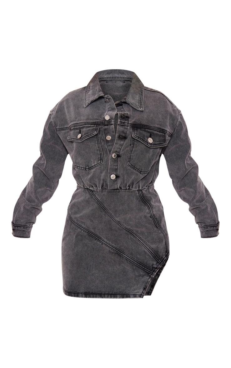 This washed grey seam detail curved hem denim mini dress is here to solve all of your weekend wardrobe dilemmas. Brought to you in a washed grey denim material with a button through design, seam detailing, long sleeves and a curved hem, what more could you ask for? Style this mini dress with knee high heeled boots and gold accessories for a look that will really make a statement. Length approx 85cm/33.5inch (Based on a sample size UK 8) Model wears size UK 8/ EU 36/ AUS 8/ US 4Model Height - 5ft 5inchp]:!mb-0inch>Category: DenimProduct type: Denim Evening DressColor: Washed GreyMaterial: Rigid DenimOccasion: Day