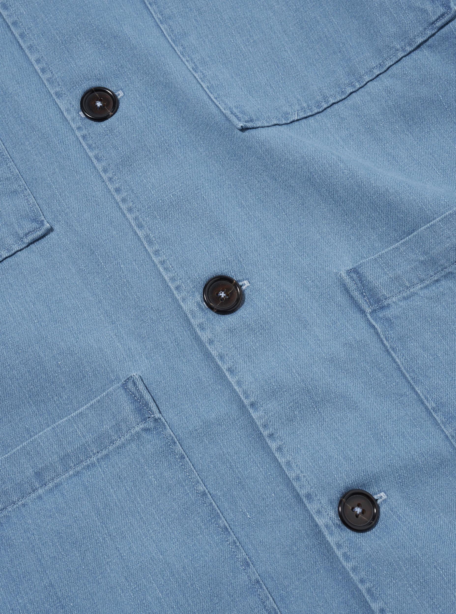 The Dockside is practical and purposeful, with an unstructured shape, complete with a back yoke with back pleats, and four front pockets that take inspiration from military fatigue styles. Our model is 6' 0'' with a 38' Chest and is wearing a size ‘Large.’ A lightweight, 100% organic cotton denim. This is made using a yarn with a slight slub, and is available in two different washes—a rinsed dark Indigo, and a heavy Washed Indigo, for a vintage-like, textured look. • Generous fit. • Two lower patch pockets. • Two chest patch pockets, one buttoned. • Fabric Content: 100% Organic Cotton. • Washcare: Wash at 30 degrees. Do not bleach. Do not tumble dry. Cool iron. Do not dry clean. Wash like colours together. Do not iron decoration. • Please be aware that the measurements below are technical measurements that are based on the garment laid flat and are useful as a general guide only. Measured in Centimetres. XS S M L XL XXL XXXL Centre Back Length. 70 72 74 76 78 80 82 Chest Width - 2.5cm Below Armhole. 54.5 57 59.5 62 64.5 67 69.5 Sleeve Length - From Shoulder (inc. Cuff.) 59.5 61 62.5 64 65.5 67 68.5 Across Shoulders. 44 46 48 50 52 54 56