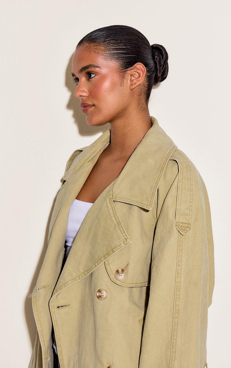 Some pieces just get it, effortlessly elevating your everyday. The washed khaki belted cropped button detail denim trench captures that artful edge, blending classic trench elements like statement wide lapels, a secure double-breasted button fastening, and sharp shoulder epaulettes. Cut to a contemporary cropped silhouette in a versatile washed khaki hue, its defining belted detail cinches the waist, ensuring a polished shape. Layer this denim essential over a crisp white tee and high-waisted pants, completing the look with fresh sneakers for an unforced, confident presence. It’s the ultimate piece for a self-aware, fashion-forward day edit.Length approx 48.5cm/19inch (Based on sample size US 4)Model wears size UK 8/ EU 36/ AUS 8/ US 4Model Height - 5ft 7inchp]:!mb-4inch>Brand: PrettyLittleThingCategory: DenimProduct type: Cropped Denim JacketColor: Washed KhakiMaterial: Rigid DenimSleeves: LongOccasion: Day
