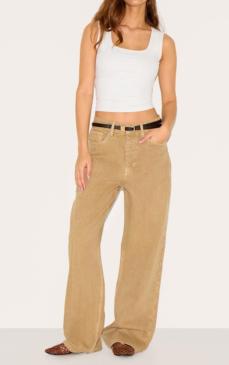 Define your denim rotation with a washed khaki base. The Washed Khaki Mid Rise Wide Leg Jeans shape a modern line, featuring a mid-rise fit that falls into a distinct wide leg silhouette, crafted from 100% cotton for a structured drape. This pair includes a classic zip fly and button front, alongside practical belt loops and pockets. Pair these pants with a simple white Vest or a ribbed cropped top, completing your day look with sneakers for an artful finish.Length approx 76cm/30inch (Based on sample size US 4)Model wears size UK 8/ EU 36/ AUS 8/ US 4Model Height - 5ft 8inchp]:!mb-4inch>Brand: PrettyLittleThingCategory: DenimProduct type: JeanColor: Washed KhakiMaterial: Rigid DenimOccasion: Day